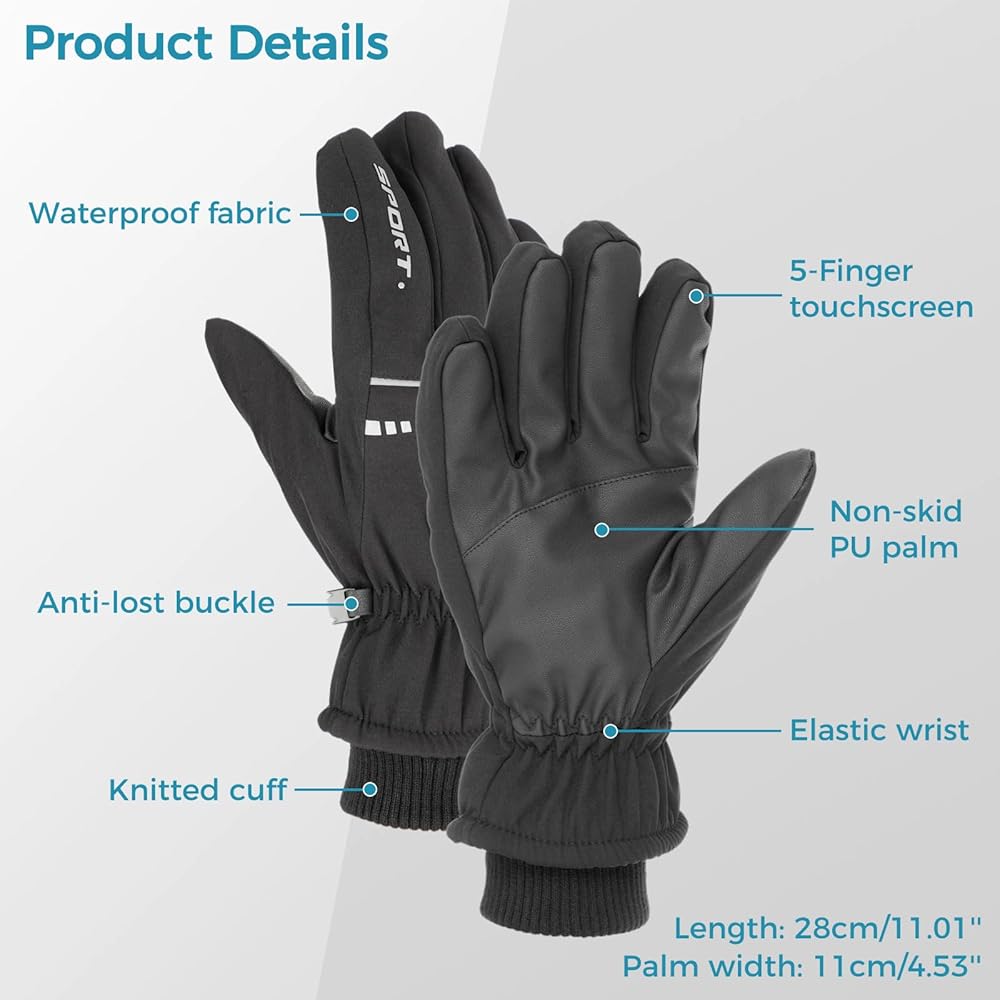 قفازات تزلج من جيكمور، قفازات شتوية للرجال على الجليد قفازات حرارية مقاومة للماء دافئة للطقس البارد، تناسب كل من الرجال والنساء، هدية الكريسماس ورأس السنة الجديدة للرجال والنساء