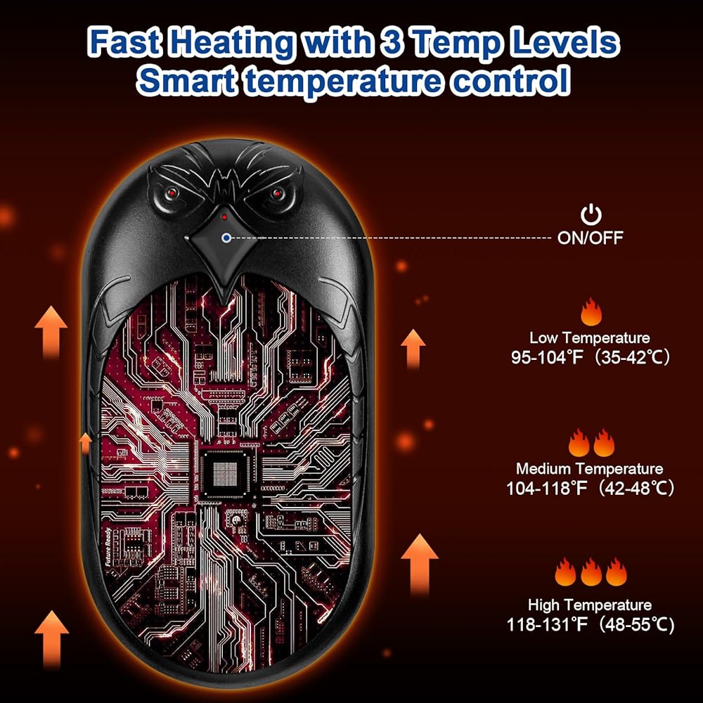 3 مستويات للحرارة والتحكم الذكي في درجة الحرارة: يمكن تعديل أجهزة تدفئة اليد المحمولة لدينا بحرية إلى مستوى تسخين منخفض/متوسط/عالي لتلبية متطلباتك. ميزة مع نظام التحكم الذكي في درجة الحرارة، يمكن أن تمنحك شعورًا مناسبًا ومريحًا لليدين، وتدفئك وتعتني بك