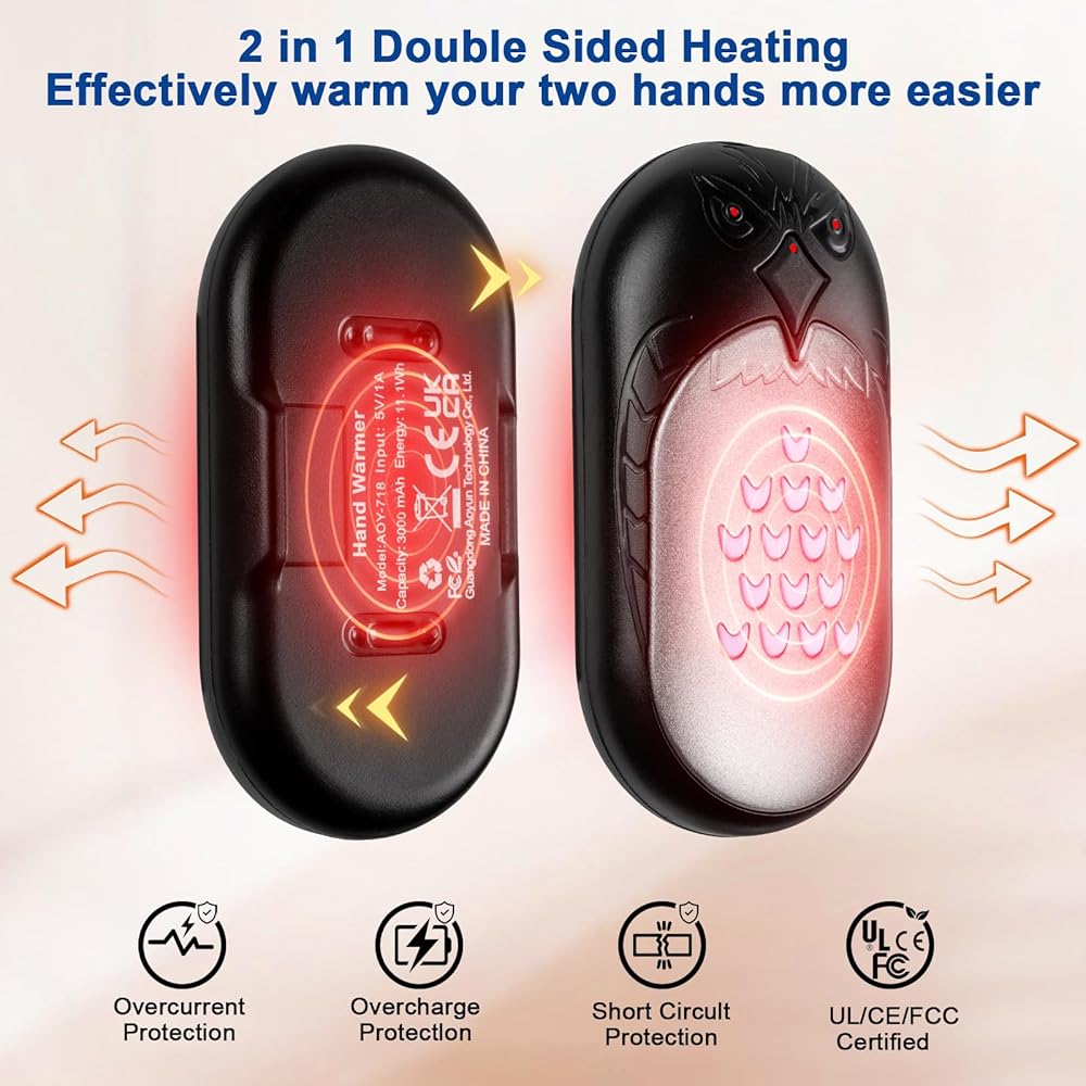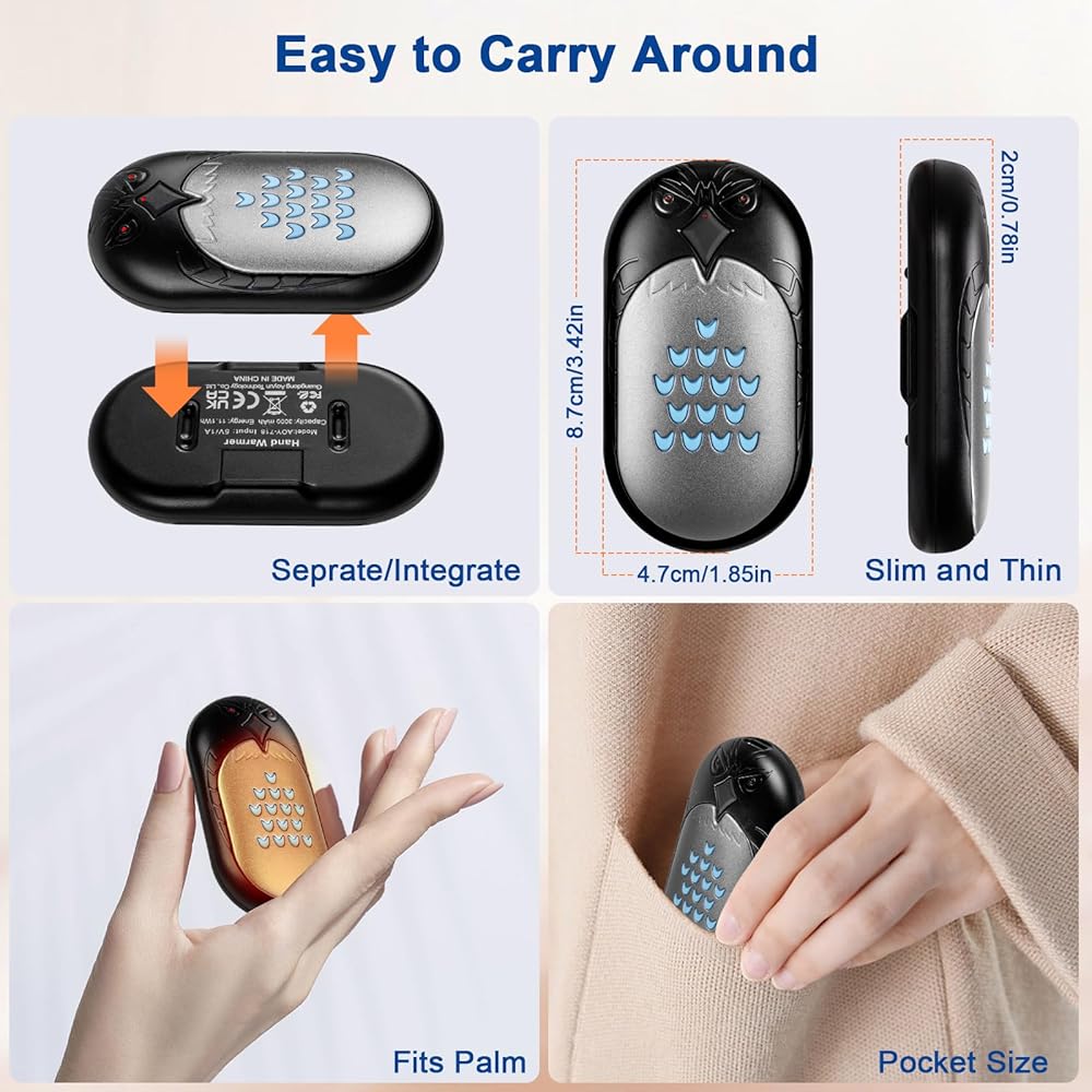 تسخين على الوجهين: عبوة فريدة من نوعها لتدفئة اليد قابلة لإعادة الشحن، يمكن فصلها أو دمجها للاستخدام. حافظ على دفء يديك في نفس الوقت في الشتاء البارد. رفيق أساسي لرحلاتك الشتوية والأنشطة المتنوعة، ويمكن أيضًا مشاركة الدفء مع العائلات والأصدقاء والصديقة والصديقة وما إلى ذلك.