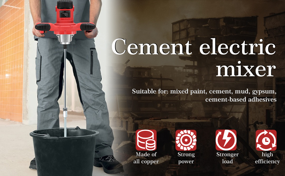 【خلاط خرسانة متعدد الاستخدام】خلاط الملاط مناسب لمختلف المواد متوسطة اللزوجة، مثل الأسمنت والخرسانة والجص والطين والطلاء والملاط والجص والمعجون واللحوم والحشو وما إلى ذلك. إنه مساعد رائع لمختلف الصناعات. عمليات الخلط. بالمقارنة مع أدوات الخلط اليدوية التقليدية، يمكن لخلاطة الخرسانة الكهربائية المحمولة أن توفر جهدك ووقتك بشكل كبير. ولكنها لا تستطيع خلط المواد اللزجة القوية والقوية، مثل الأسمنت اللزج القوي والغراء اللزج القوي وغيرها من المواد اللزجة القوية.