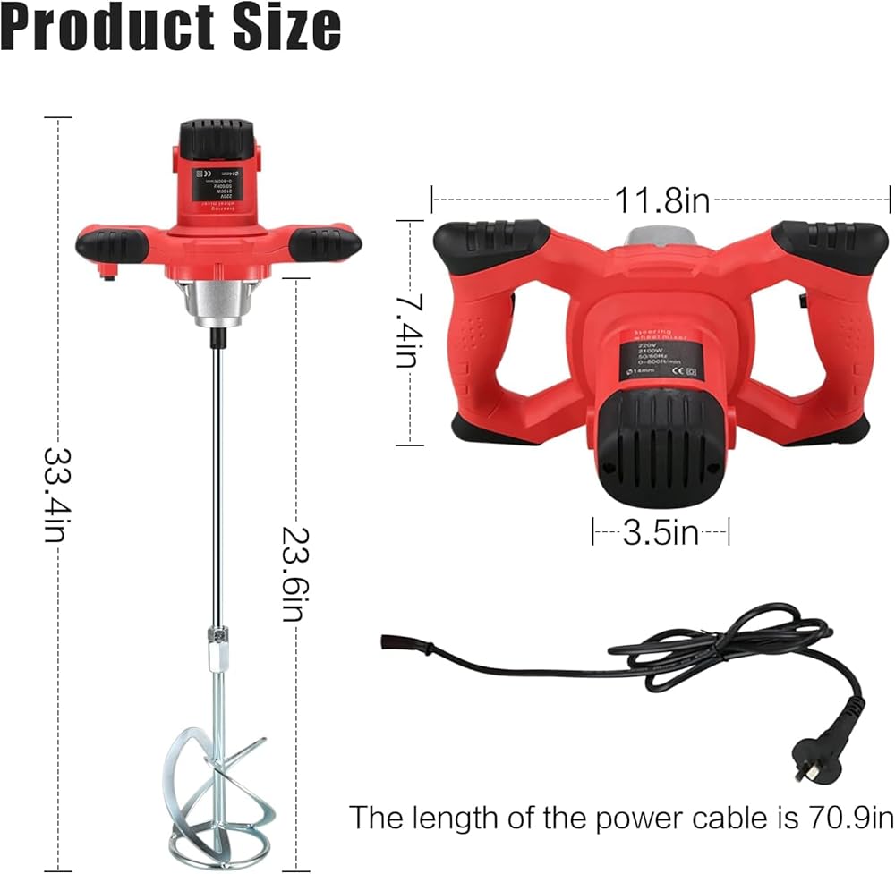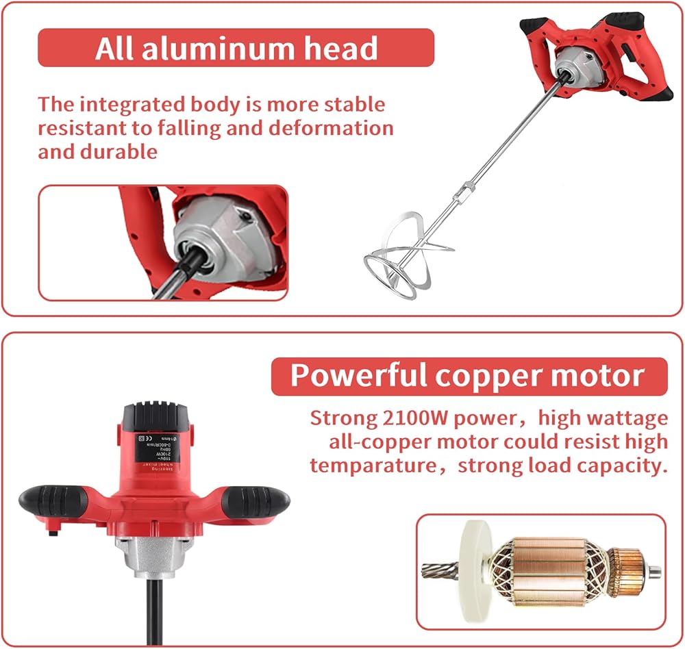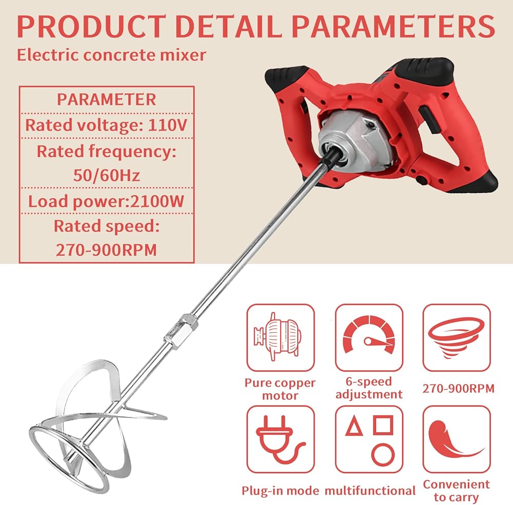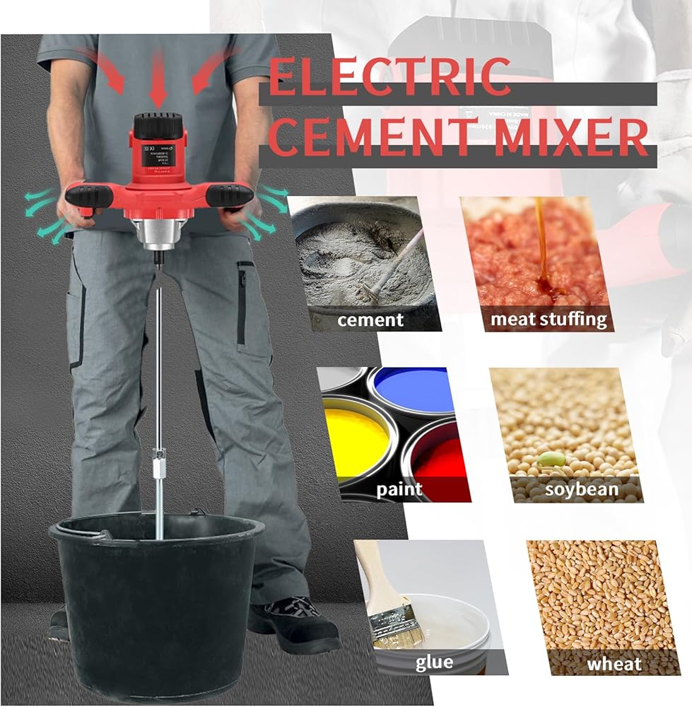 【توفير طاقة قوية】تم تجهيز خلاط الأسمنت هذا بمحرك 2100 واط مع 270-900 دورة في الدقيقة، 110 فولت/60 هرتز، والذي يمكن أن يوفر عملية تحريك أكثر كفاءة واستقرارًا. إنه أكثر قوة ولكن مع القليل من الضوضاء. مناسب لخلط الطلاء الزيتي والأسمنت العلف، الطين، حبر الطباعة، الملاط الرقيق، الجص، المواد اللاصقة الأسمنتية وغيرها. ملاحظة: لا ينبغي استخدام هذا المنتج في الخرسانة مع مخاليط شديدة اللزوجة من الأسمنت والركام الكبير (الصخور)
