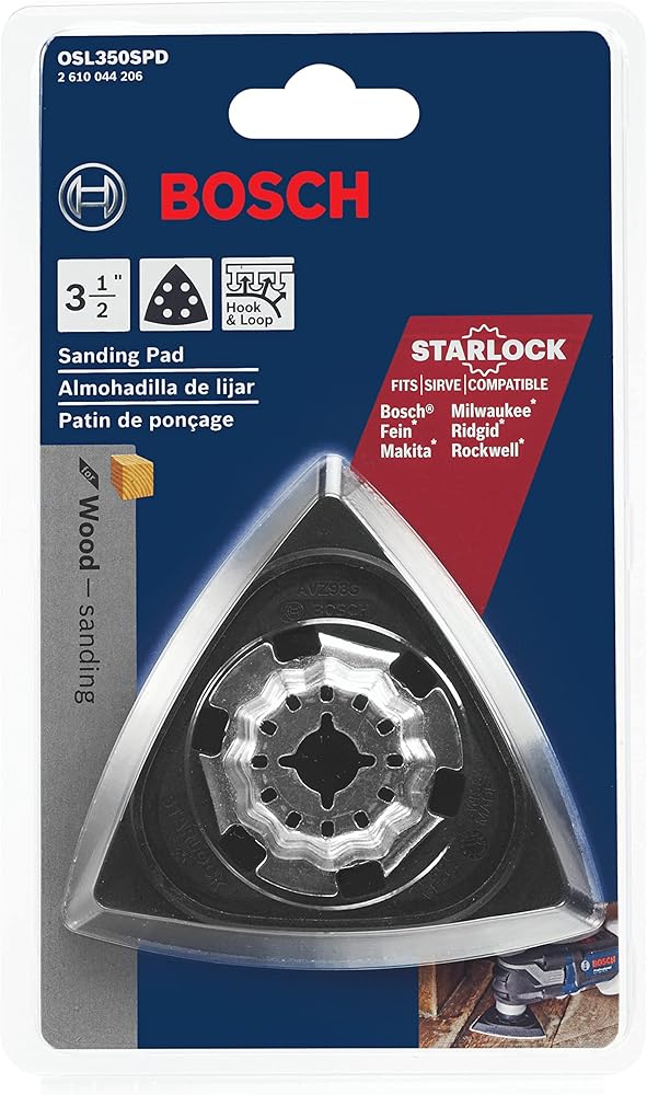 إن وسادة الصنفرة دلتا متعددة الأدوات OSL350SPD من Bosch عبارة عن وسادة مثلثة لربط صفائح على شكل مثلث مصممة للصنفرة التفصيلية. تتميز هذه اللوحة بواجهة ملحقة للأدوات ثلاثية الأبعاد Star lock، والتي توفر مساحة اتصال أكبر مقابل الواجهة المسطحة للحصول على أفضل قبضة في فئتها ونقل عزم الدوران الأعلى. غالبًا ما يتطلب الصنفرة باستخدام أداة متعددة الوصول إلى المناطق التي يصعب الوصول إليها بزوايا صعبة. تلبي مثلثات الصنفرة من Bosch أيضًا الحاجة إلى إزالة المواد وتشطيب الأسطح على الخشب الرقائقي متعدد الأغراض والأخشاب الصلبة والأخشاب اللينة.