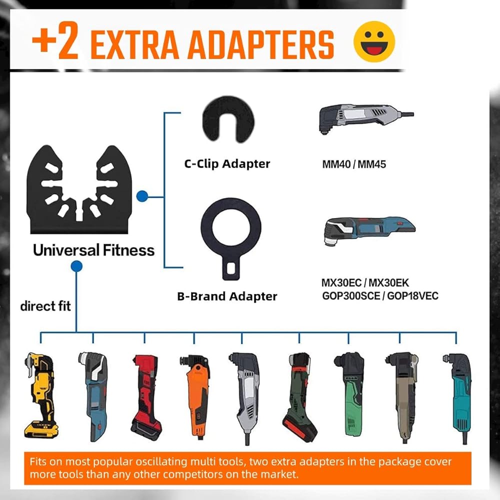 【FITS 99% CONVENTIONAL MULTI-TOOLS】Two extra adapters, fits more numerous oscillating tools than competitors, compatible with most brand oscillating tools.