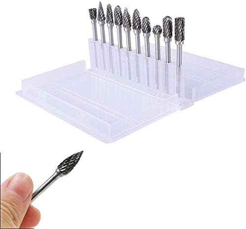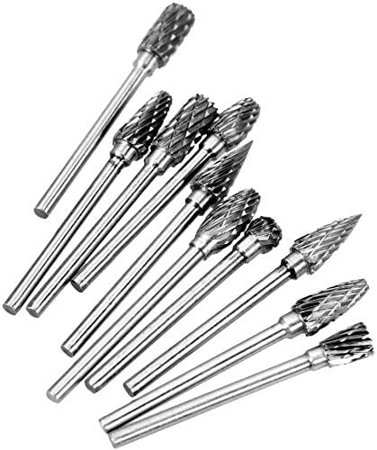 مجموعة شفرات دوارة من الكربيد مزدوجة القطع من ASNOMY - 10 قطع ساق 1/8 بوصة، طول الرأس 1/4 بوصة من فولاذ التنجستن لحفر مطحنة القالب، ونحت المعادن، والتلميع، والنقش، والحفر
