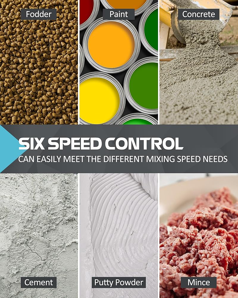 【6 مستويات للتحكم في السرعة 】 يتميز خلاط الأسمنت هذا بـ 1-6 سرعة تبديل للتعامل مع مجموعة متنوعة من المواد المختلفة، ويقلب جيدًا. تصميم قابل للفصل بثلاث مراحل، مما يجعل تخزين وحمل خلاطة الخرسانة الكهربائية هذه أسهل في أي مكان عمل.