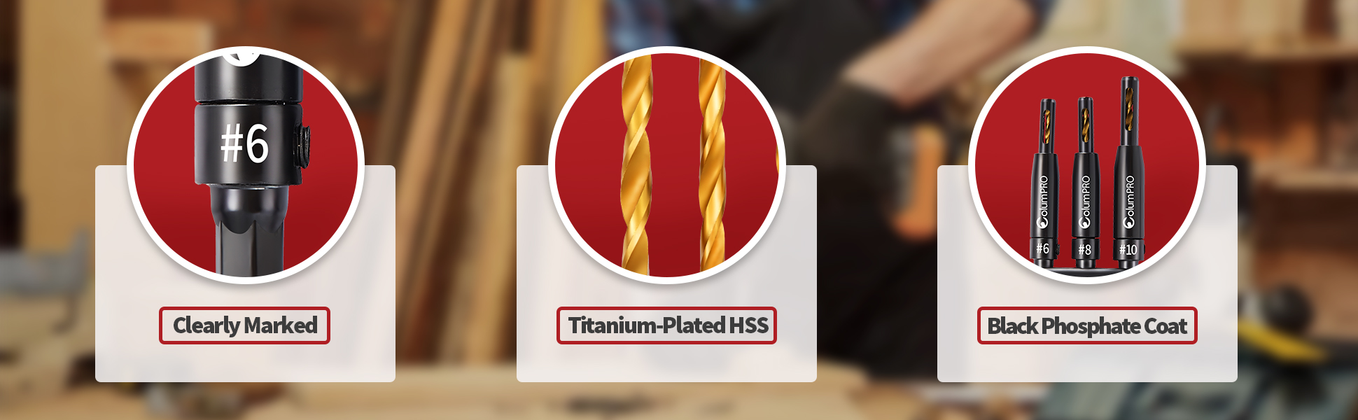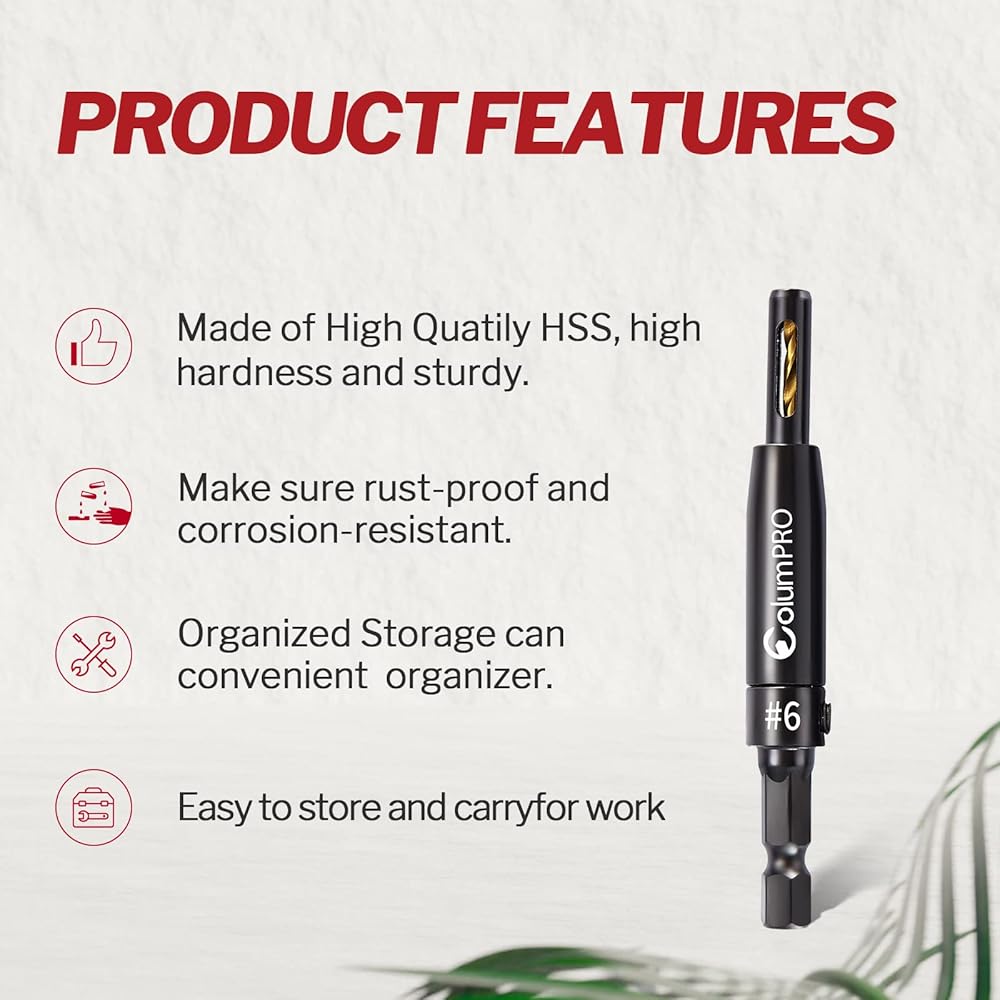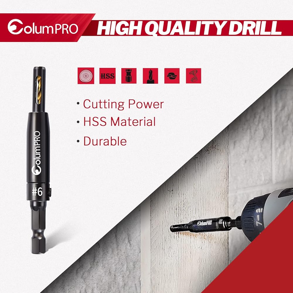 ColumPRO 3 قطع HSS المفصلي الذاتي توسيط الحفر VIX بت مجموعة، التيتانيوم تصفيح كونترسينك اليد اليسرى مجموعة لقم الحفر، باب نافذة خزانة النجارة الطيار ثقب مثقاب 3/32 "(#6)، 7/64"(#8)، 1/8" (#10)