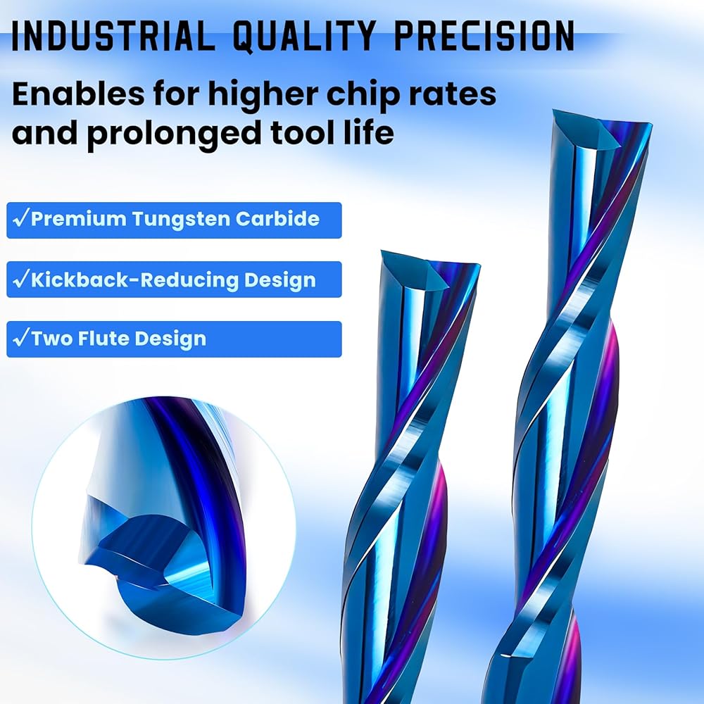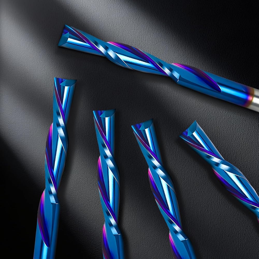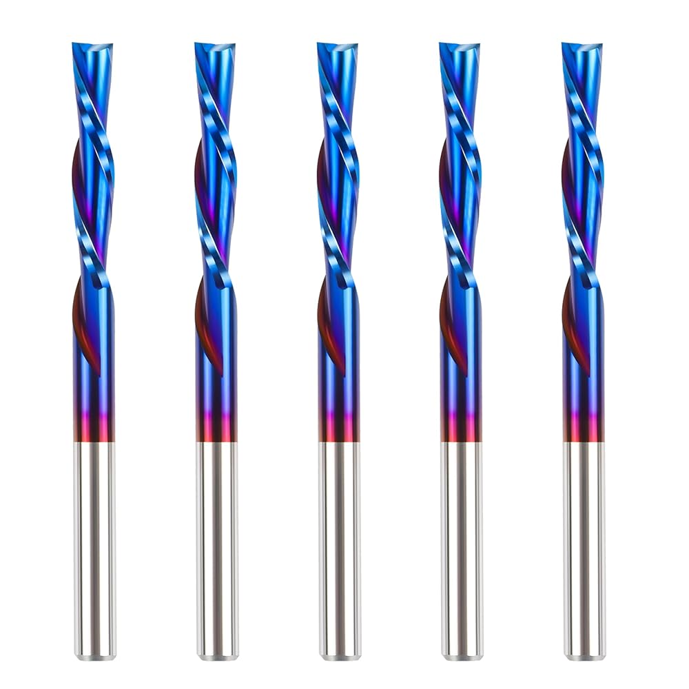5 قطع من رؤوس CNC اللولبية ذات الناي المزدوج: مثالية للنحت / القطع / النقش / الطحن / الشق / النحت في مواد مثل MDF، ABS، PVC، الأكريليك، النايلون، الراتنج، البلاستيك، لوحة الكثافة، الخشب، الخشب الرقائقي، الخشب الصلب إلخ. تستخدم على نطاق واسع لأغراض النقش باستخدام الحاسب الآلي، والطحن، والتخشين، والتجويف، والنحت ثلاثي الأبعاد