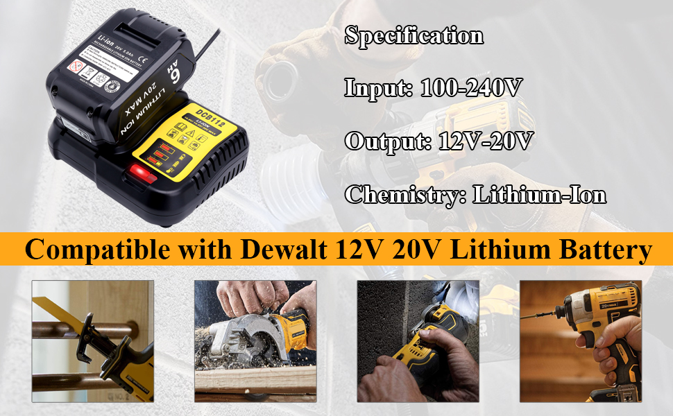 Replacement for 12V/20V 60V MAX Lithium-Ion Battery DCB112, DCB107, DCB115, DCB119, DCB102. Advanced charging technology, charges 20 volt battery in 60 mins or less.