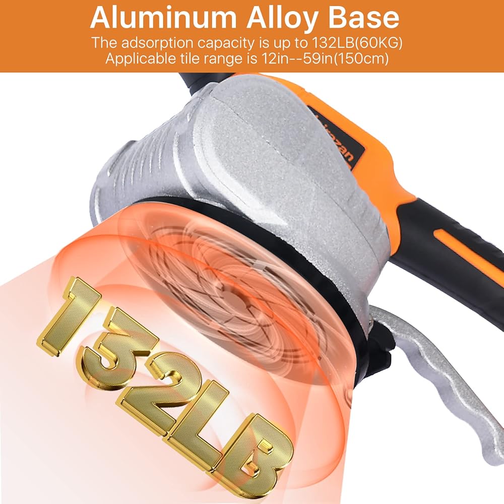 امتصاص قوي 132 رطل: تتمتع أكواب الشفط السميكة بقوة شفط قصوى تبلغ 132 رطلاً (60 كجم) وهي مناسبة للبلاط الذي يتراوح حجمه بين 12 بوصة و59 بوصة (150 سم).