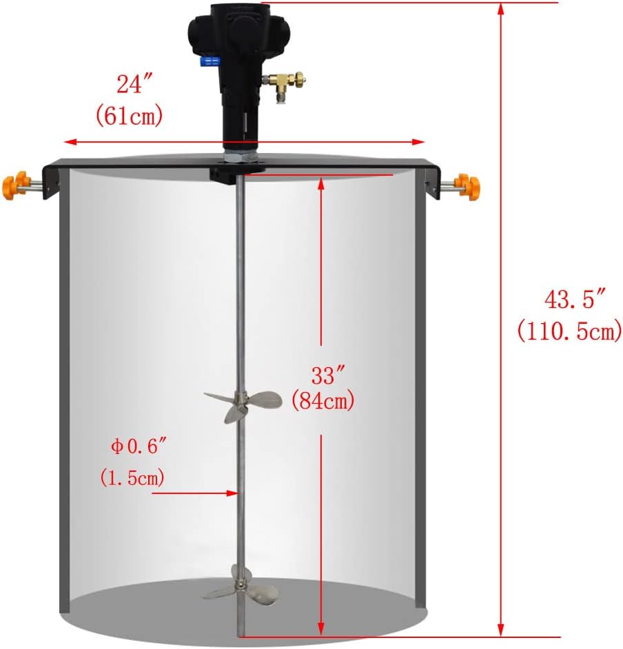 【معاملات المنتج】- سعة المزج: 200 لتر (50 جالون)؛ المحرك: قوة الهوائية: 1/2 حصان، مادة الشفرة: فولاذ مقاوم للصدأ، ضغط العمل: 6-8 ميغاباسكال