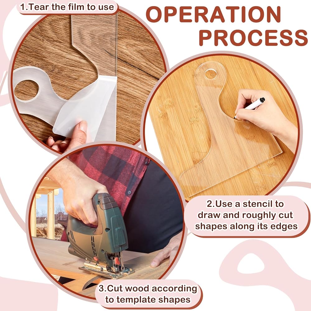 • سهلة التشغيل: قوالب الأكريليك سهلة الاستخدام، تحتاج فقط إلى استخدام القلم الذي نقدمه لرسم شكل على طول حافة القالب، ثم قطع الخشب وفقًا لهذا الشكل للحصول على مقبض لوح تقطيع جميل