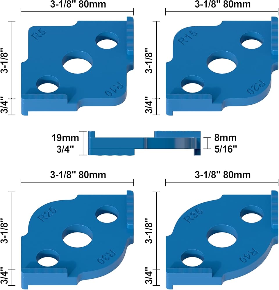 XDENGP Radius Jig Router Templates 4 قطع، قوالب توجيه نصف قطر الزاوية، صلابة عالية ABS + CNC توجيه زوايا مستديرة قوالب بت التوجيه لتوجيه الأعمال الخشبية، R5/10/15/20/25/30/35/40