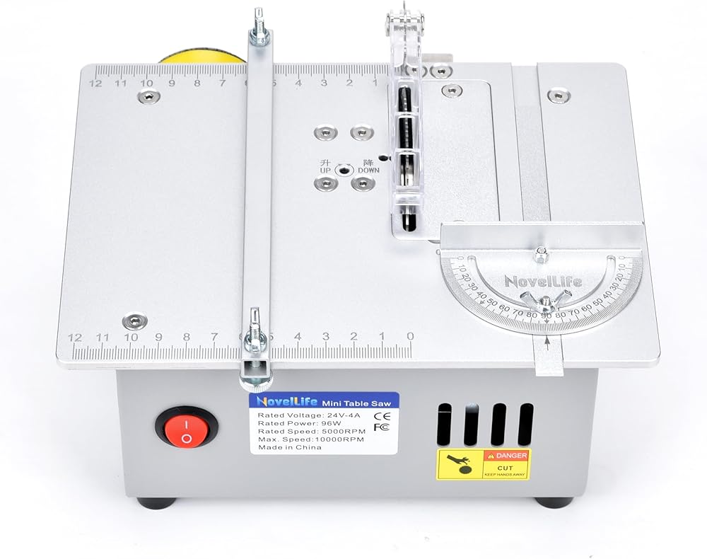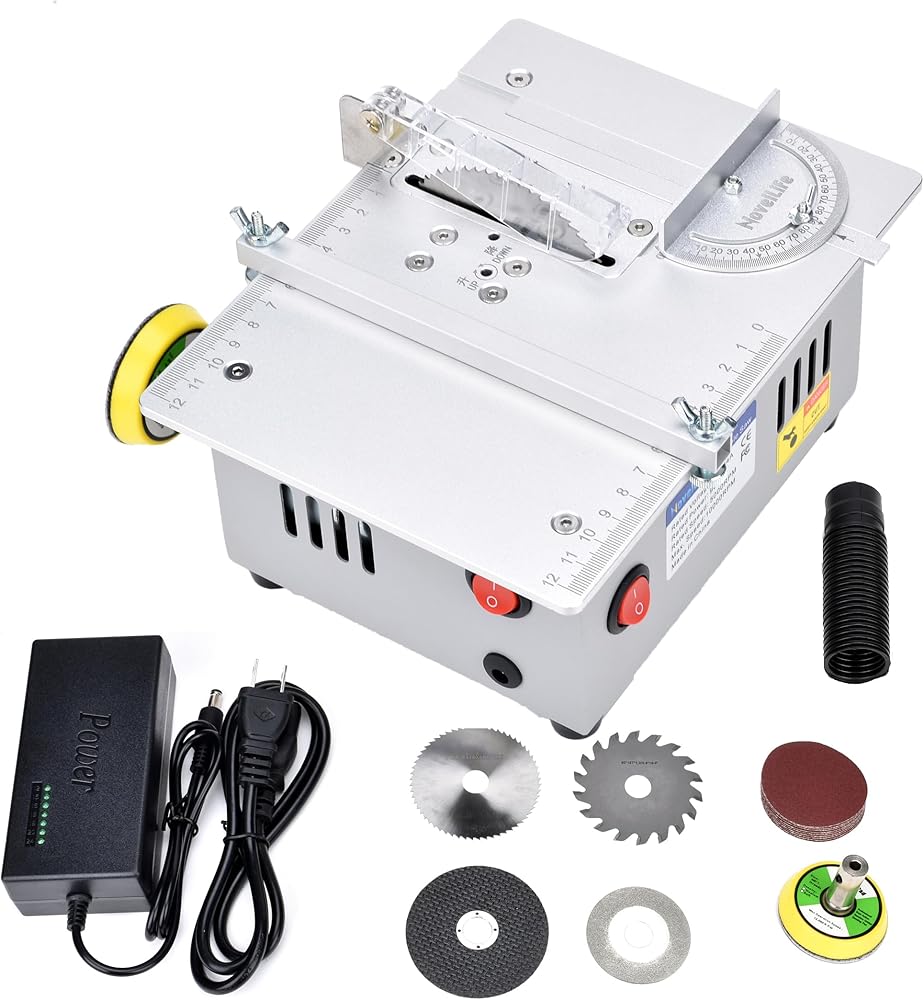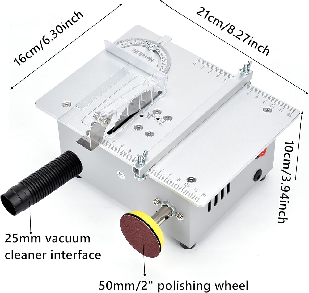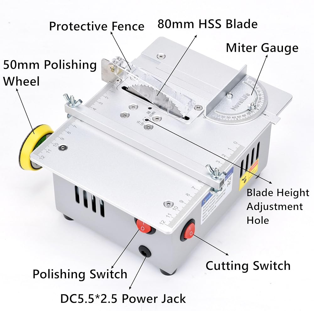 منشار طاولة هواية صغير من NovelLife مع مقياس ميتري، شفرة منشار دائرية من سبائك الفولاذ HSS مقاس 3 بوصة، وسادة تلميع، مصدر طاقة 96 وات للحرف اليدوية الخشبية المصنوعة يدويًا، قطع لوحة الدوائر المطبوعة