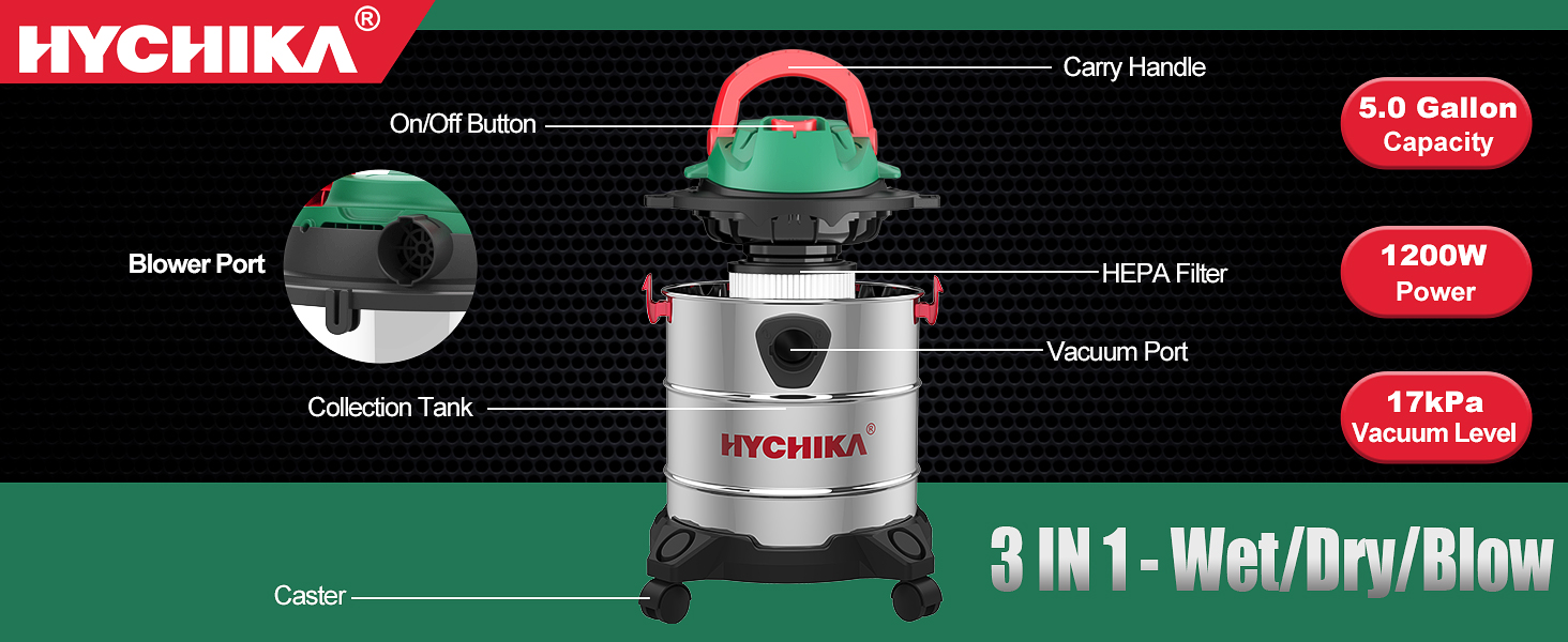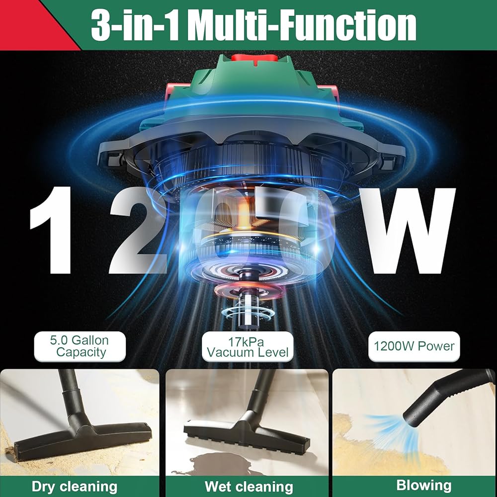 【قوة شفط فعالة】: المكنسة الكهربائية الرطبة والجافة من هيشيكا مجهزة بمحرك 1200 واط وقوة شفط قوية، مع أقصى تدفق هواء يصل إلى 60CFM، مكنسة كهربائية > 2.5 رطل لكل بوصة مربعة، لتلبية المتطلبات اليومية. يلتقط فلتر HEPA أكثر من 97% من الجزيئات بحجم 0.3 مم، مما يحمي المحرك من أجل عمر خدمة أطول.