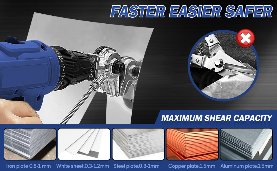 توافق واسع: أداة قطع الألواح المعدنية متوافقة مع معظم المثاقب اليدوية والليثيوم والصدمات الموجودة في السوق، مما يجعل من السهل عليك استبدالها واستخدامها بشكل يومي.