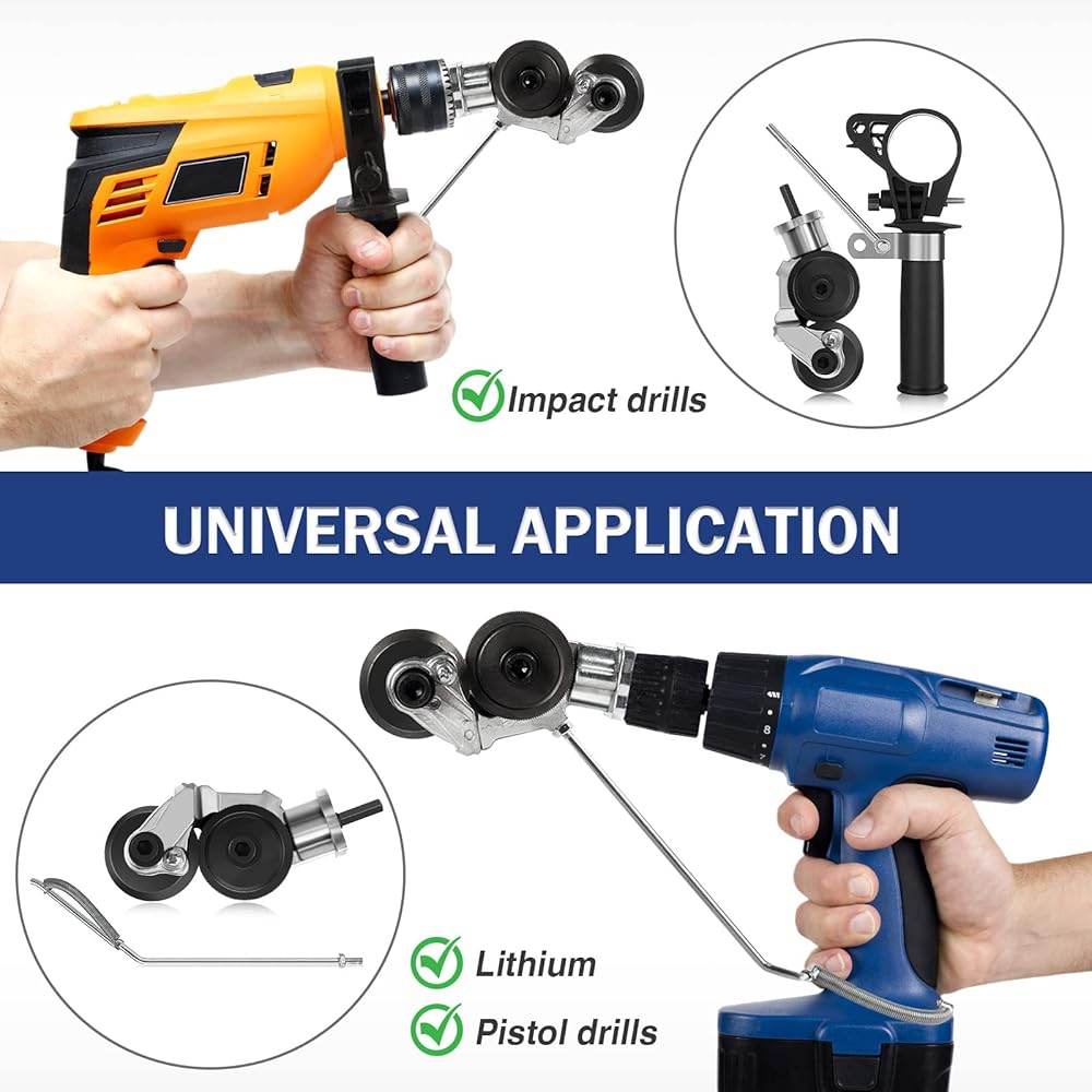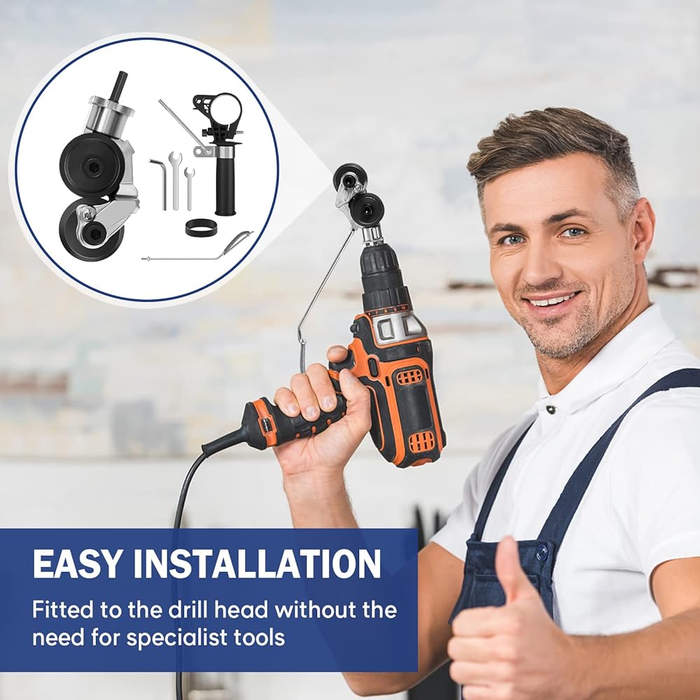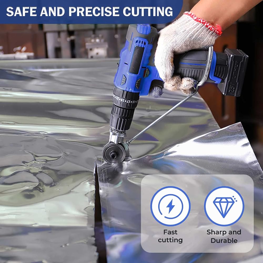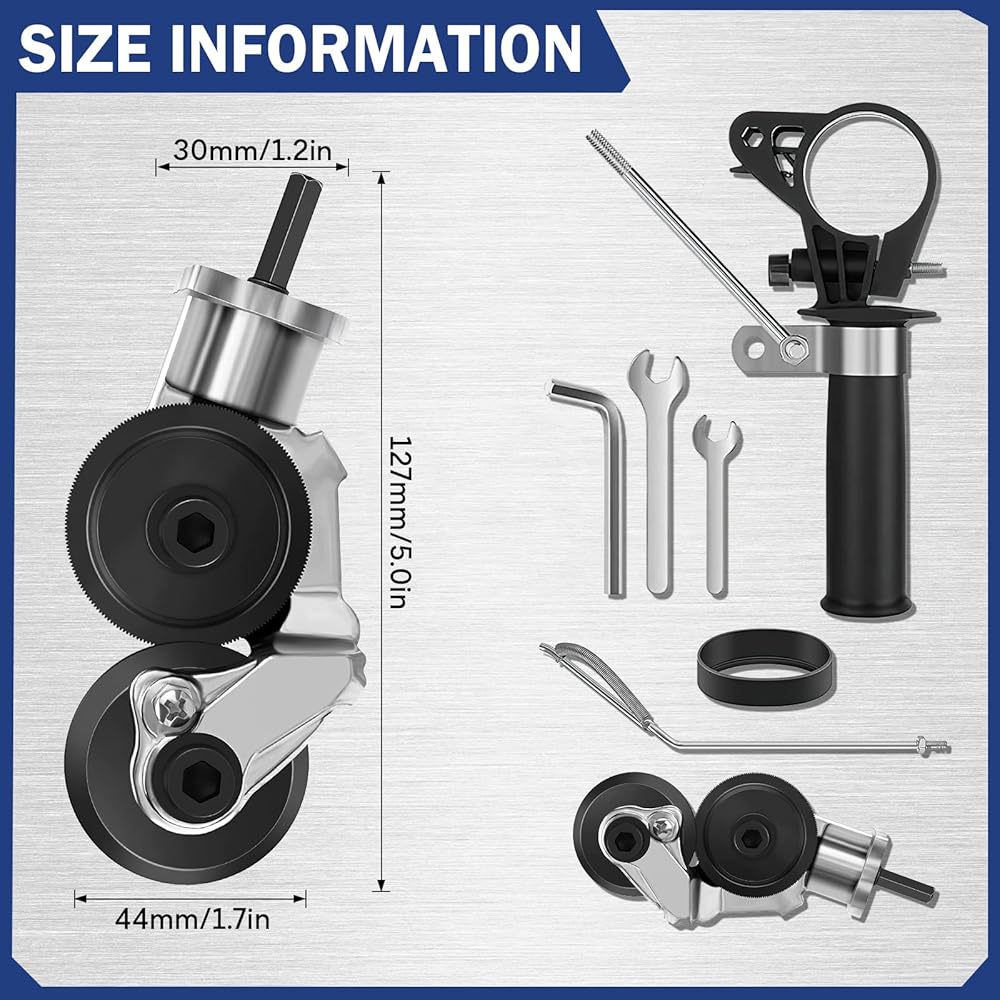 سهل الاستخدام: حوّل المثقاب بسرعة إلى مقص كهربائي مع هذا الملحق المعدني المبتكر الذي يتناسب تمامًا مع حامل رؤوس المثقاب الخاص بك. يمكن تركيب ملحق المثقاب بسهولة وأمان وهو جاهز للاستخدام الفوري.