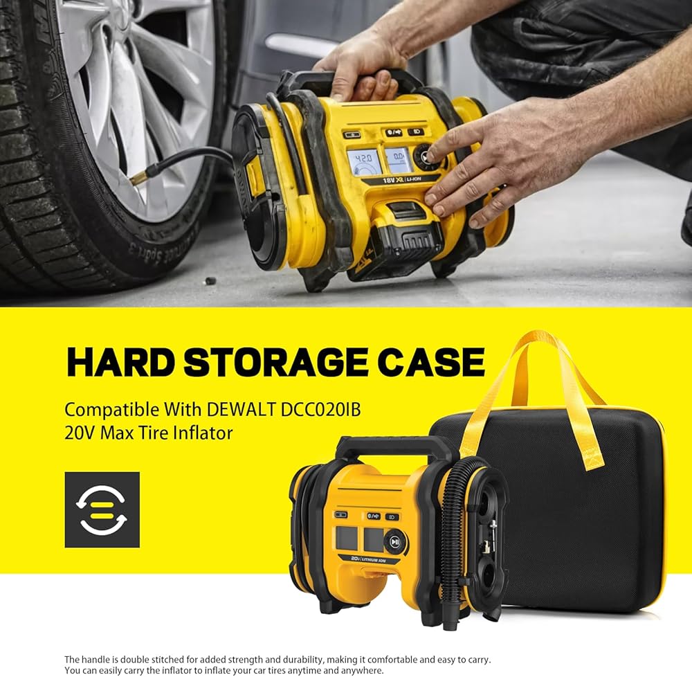 • ملاءمة مثالية: استبدال الهيكل الصلب الوكس لمنفاخ الإطارات اللاسلكي ديوالت 20 فولت كحد أقصى DCC020IB DEWALT (حقيبة حمل منفاخ الإطارات فقط). حافظة ضاغط الهواء المحمولة ديوالت من ديوالت تناسب تمامًا ضاغط هواء بطارية ديوالت DCC020IB DCC020IB من ديوالت