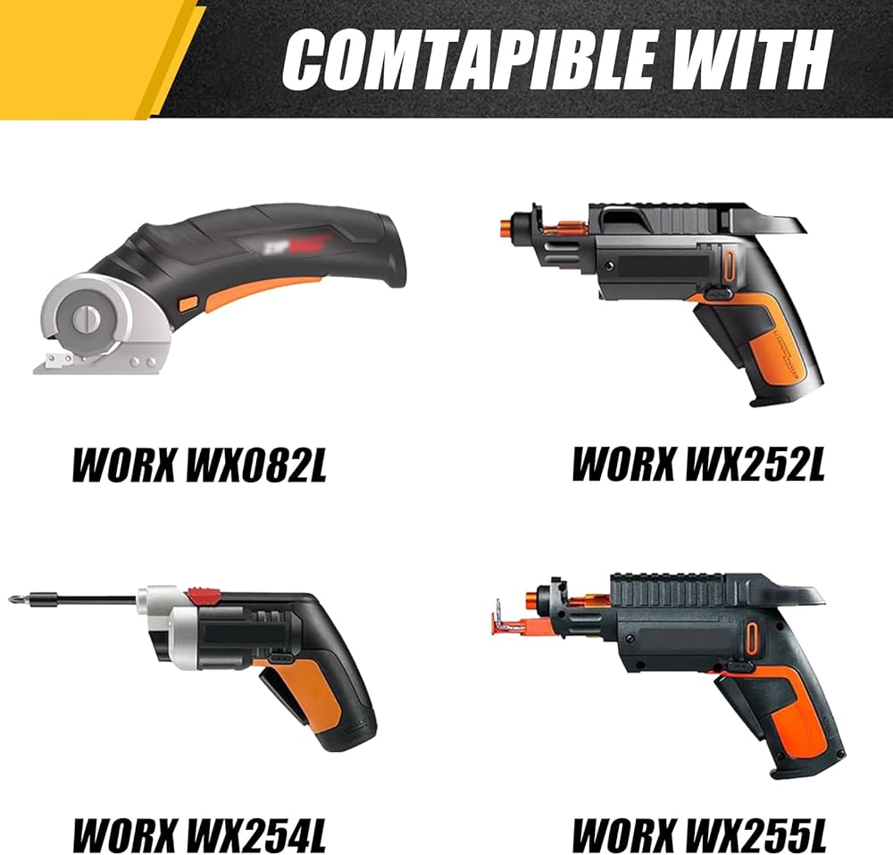 Exclusive Fit: Fit for Worx WX252 WX252L & Worx WX253 WX253L & WX254L Cordless Screwdriver, WORX WX255L WX255L.2 SD Slide Driver,WORX WX082L 4V ZipSnip Cordless Electric Scissors,Please verify your Screwdriver type before purchasing. Please note that this charger is not an OEM product.