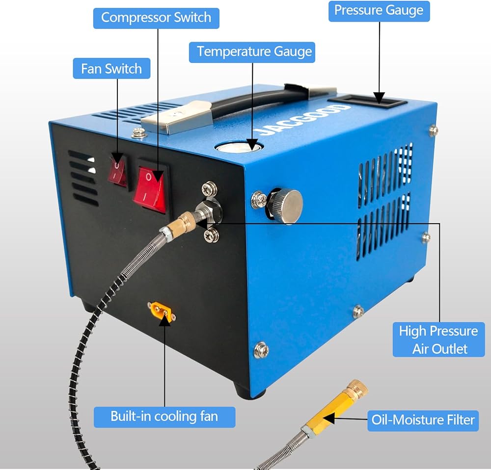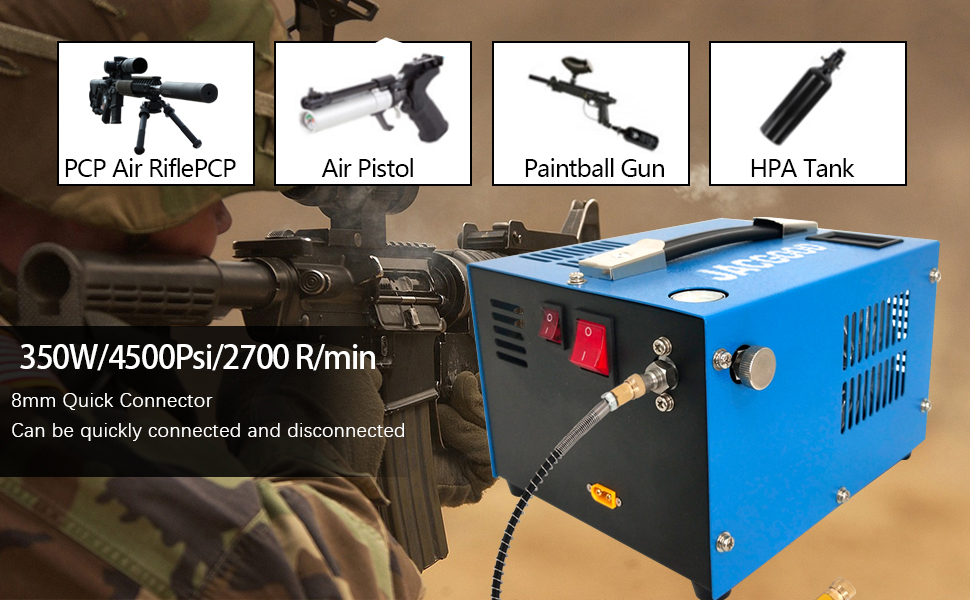 【تصميم المقياس】يتميز ضاغط الهواء PCP هذا بمقياس الضغط ودرجة الحرارة المرئي. أنها مريحة بالنسبة لك لمراقبة الجهاز. المعلمة: الطاقة 350 واط، الحد الأقصى. الضغط 4500 رطل لكل بوصة مربعة، معدل النفخ 2700 دورة/دقيقة. ملاحظة: عندما يصل الضغط أو درجة الحرارة إلى القيمة القصوى، يرجى إيقاف تشغيل الضاغط يدويًا.