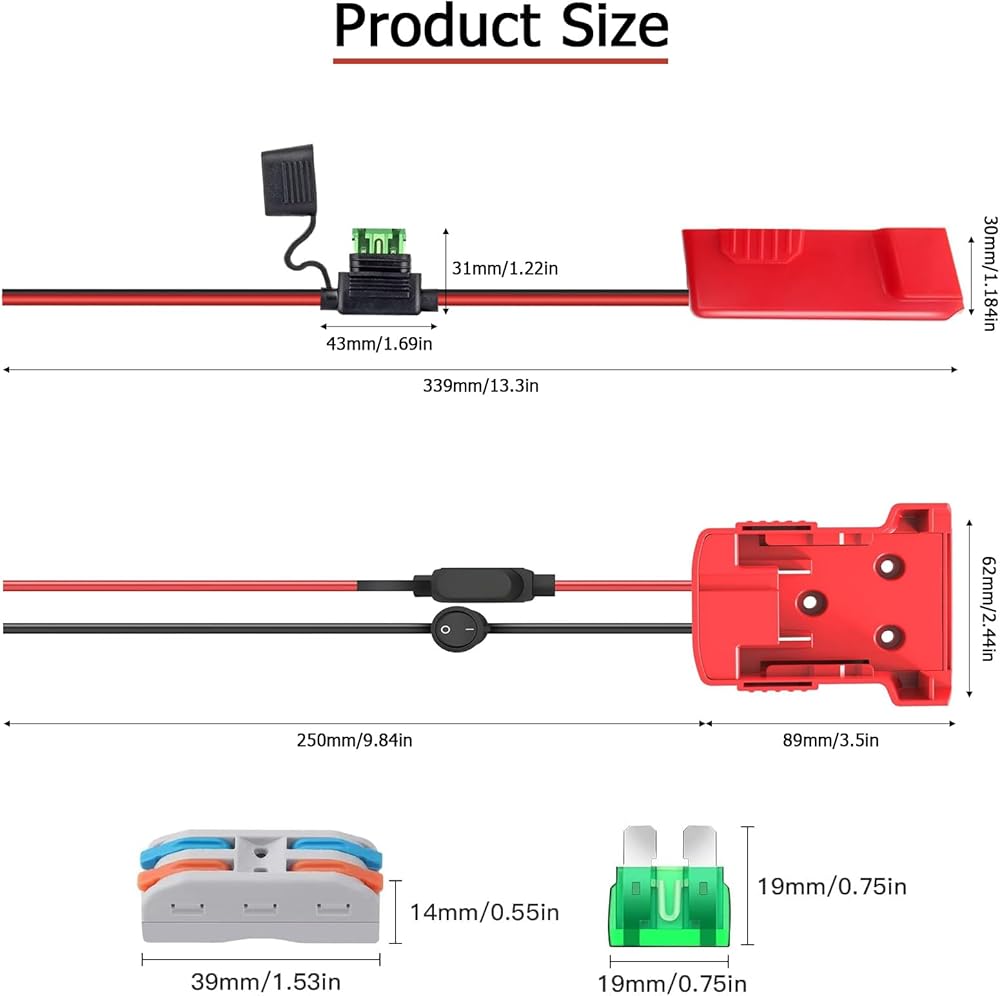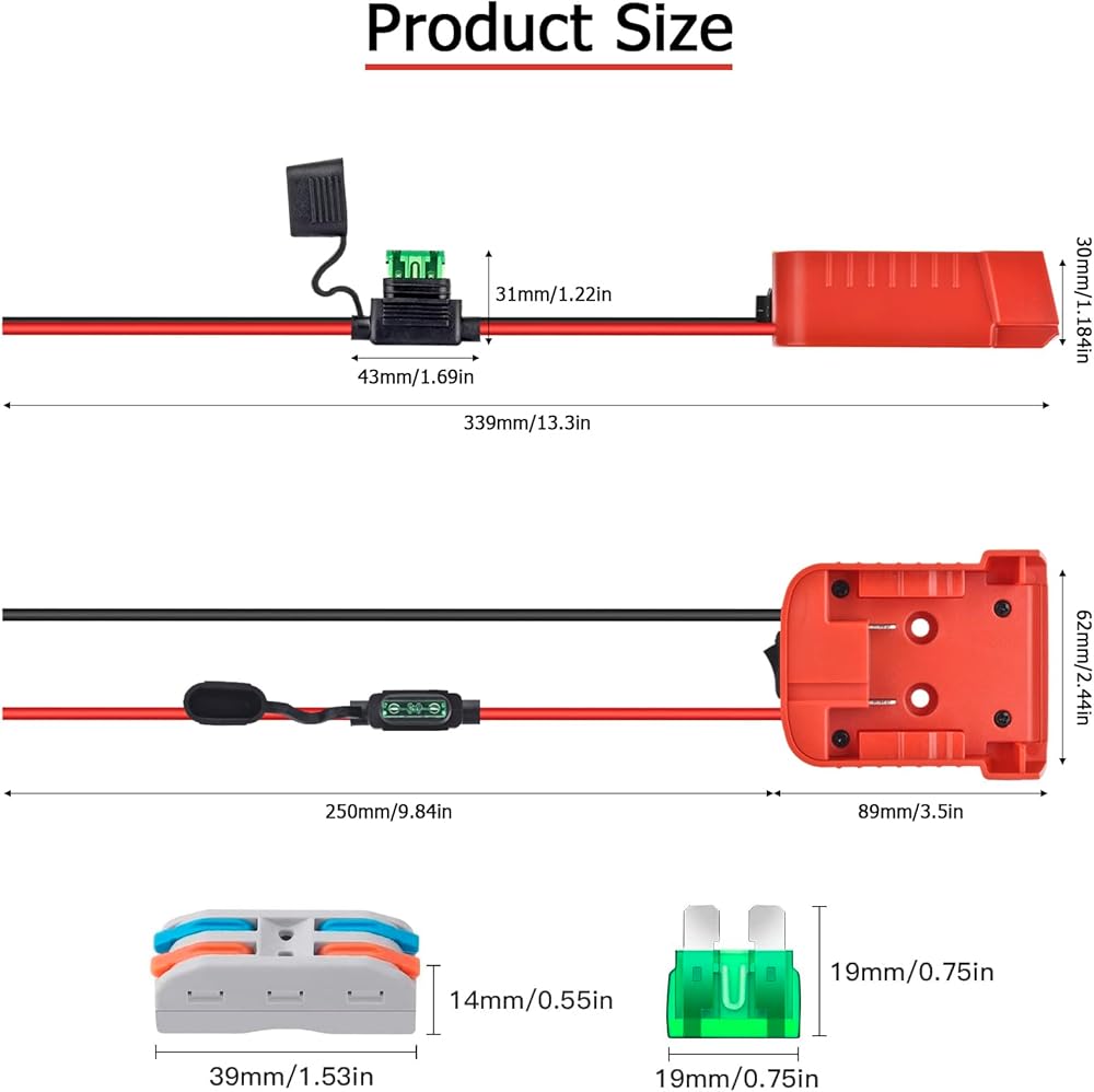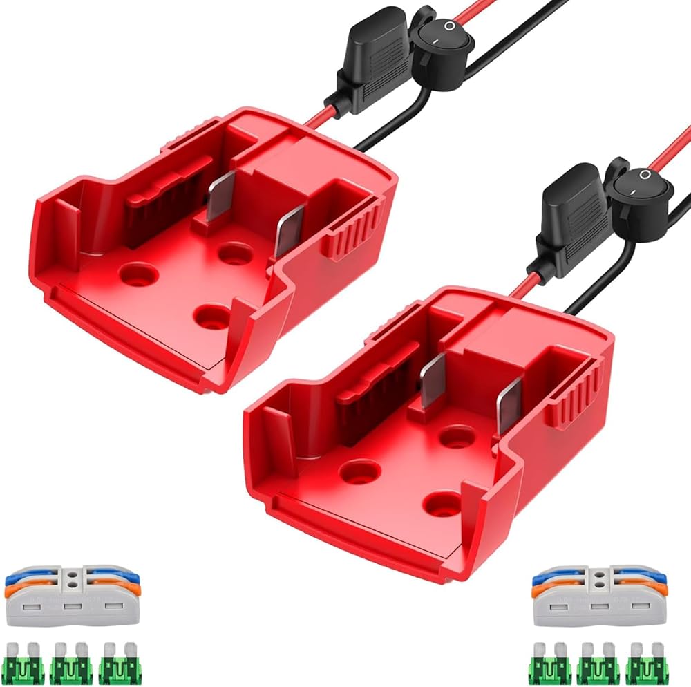 2 حزمة محول عجلات الطاقة لميلووكي M18، 18 فولت طقم تحويل البطارية لعجلات الطاقة مع التبديل، الصمامات ومحطات الأسلاك، سلك 12AWG، موصل الطاقة لألعاب السيارات Rc DIY والروبوتات