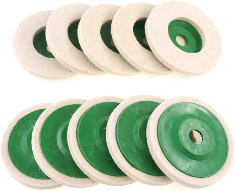 【المواصفات: تحتوي المجموعة على 10 وسادات لعجلة التلميع بنفس المواصفات. بقطر خارجي 4 بوصات (100 ملم)، وقطر داخلي 16 ملم وسمك 8 ملم.