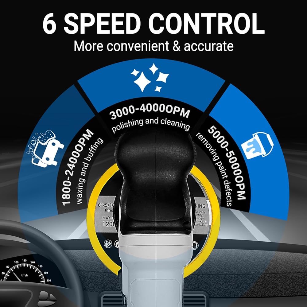 🚗6 أداة تلميع متغيرة السرعة: تتيح لك ميزة مجموعة شمع السيارة ضبط سرعة أدوات إزالة الشعر بالشمع الكهربائية الصغيرة من 1800 إلى 5500 دورة في الدقيقة حسب استخدامك.
