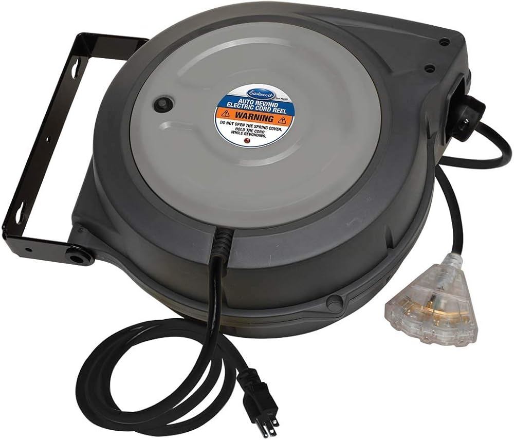 Eastwood 50 قدم الثقيلة 12 قياس الترجيع التلقائي الحبل الكهربائي بكرة 120VAC 15Amp