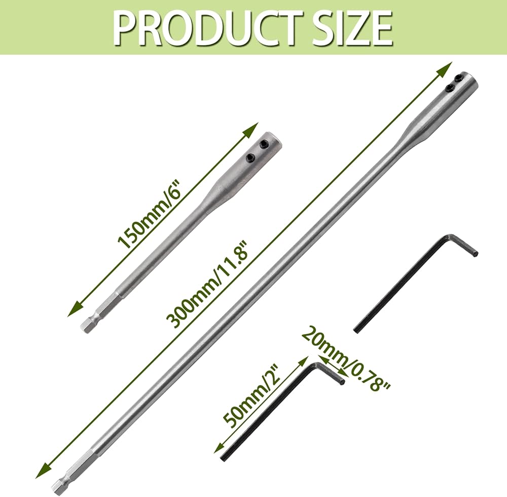 Cionyce 4 قطعة 1/4 تمديد بت 6 بوصة حامل لقمة مثقاب 12 بوصة الخشب المجرف مثقاب الخشب تمديد طويل المجرف مثقاب صغير عرافة عرقوب