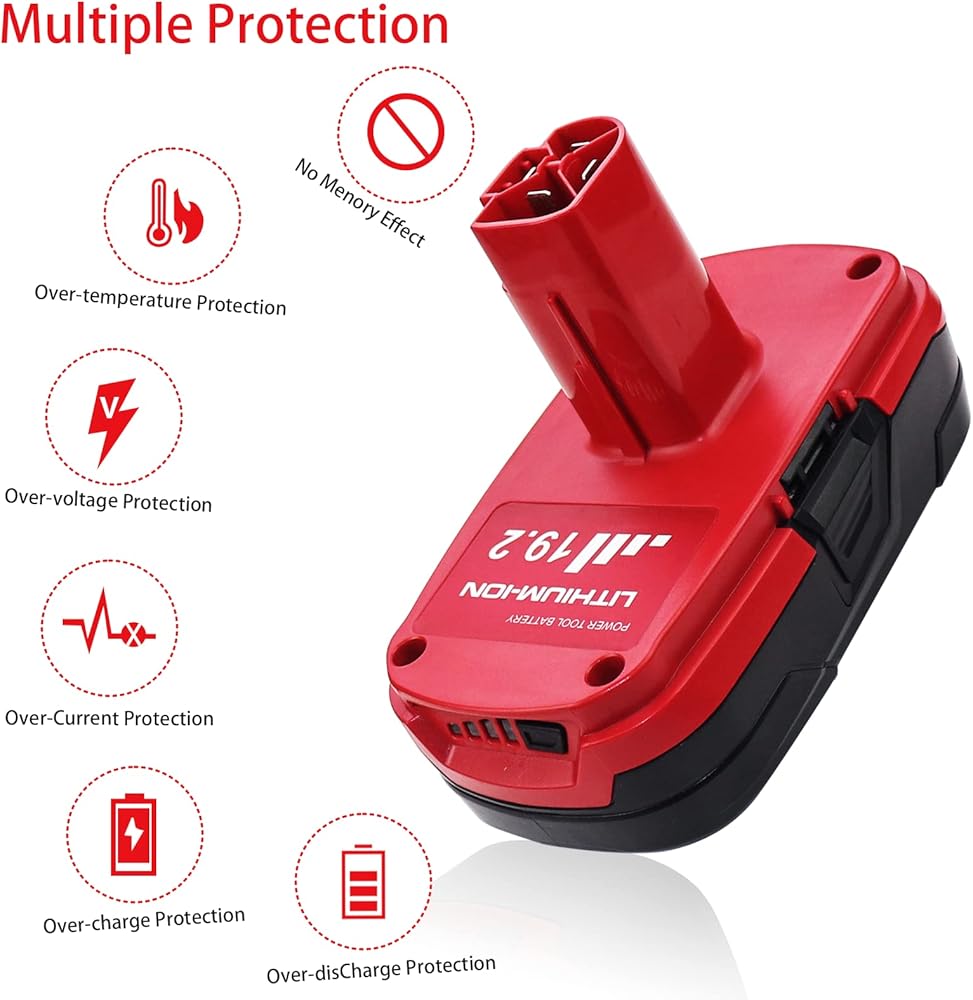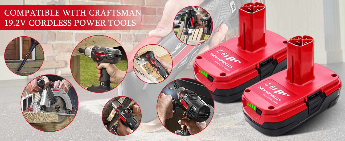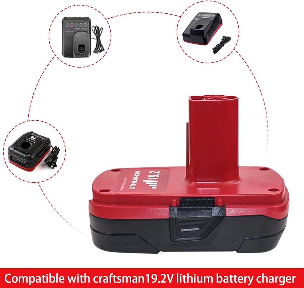 - متوافق مع أدوات الطاقة اللاسلكية Craftsman 19.2V بما في ذلك المثقاب والمناشير وأجهزة الصنفرة وما إلى ذلك