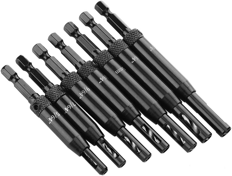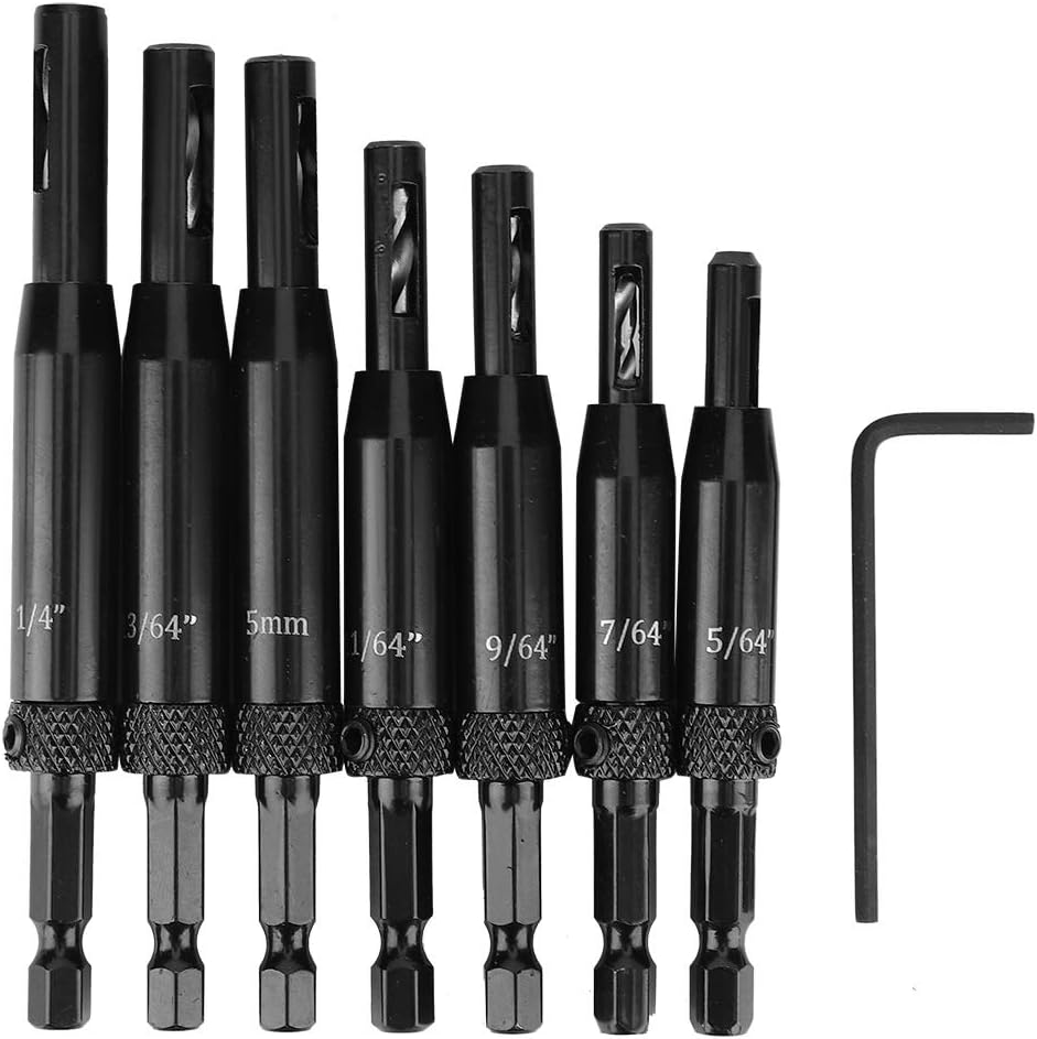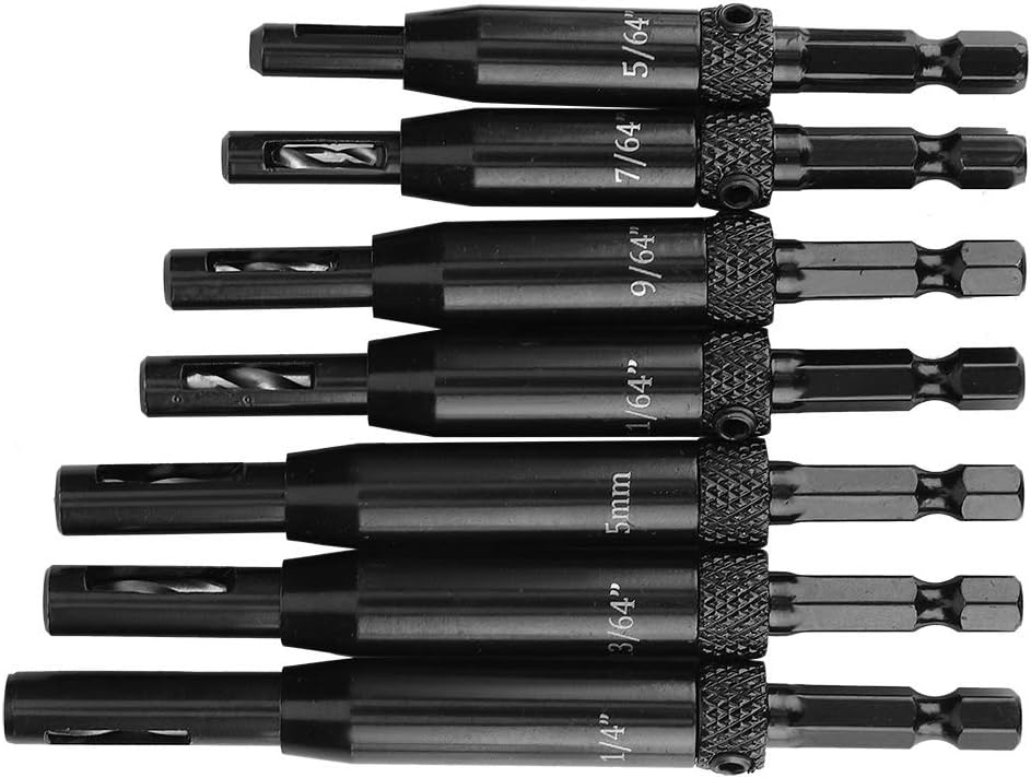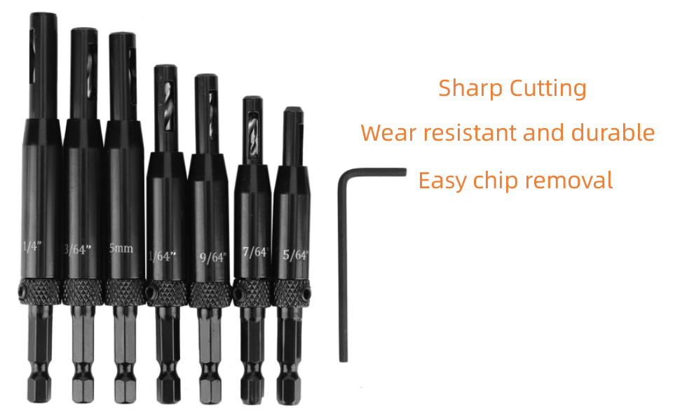محتويات العبوة: طقم مفصلات للنجارة يحتوي على 5/64 بوصة، 7/64 بوصة، 9/64 بوصة، 11/64 بوصة، 5 بوصة، 13/64 بوصة، 1/4 بوصة هناك 7 مواصفات لرؤوس الحفر للاختيار من بينها، يمكنك الاختيار وفقًا لاحتياجاتك لتلبية احتياجاتك