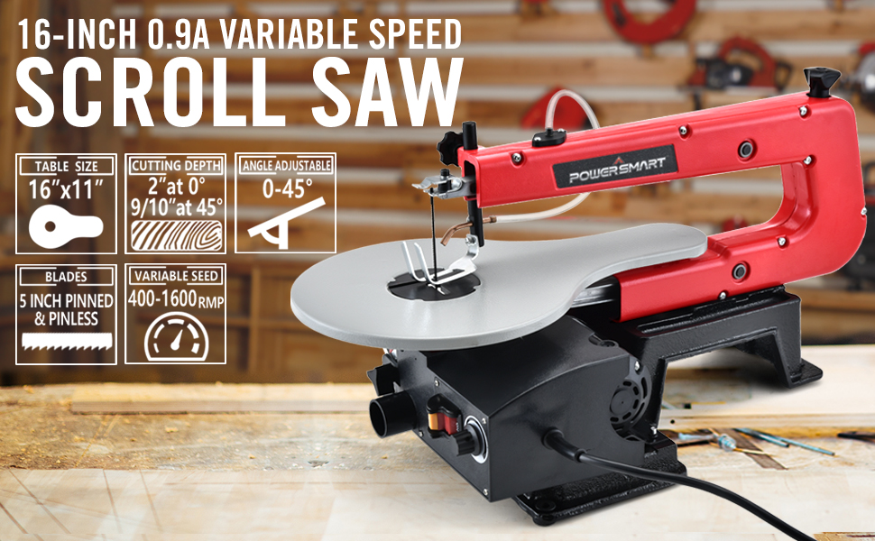 تصميم فريد يقبل الشفرات في اتجاهين (قياسي و90 درجة) للسماح بقدرة تمزيق لا حصر لها، سرعة متغيرة تتراوح من 400 إلى 1600 ضربة في الدقيقة، طاولة واسعة 16 × 11 انش مائلة حتى 45 درجة إلى اليسار لقطع الخشب بزاوية حتى سمك 2 انش مع عمق حلق 16 انش في الوضع القياسي يتميز ببرغي إبهام محول شفرة بدون أدوات بدون أدوات تغيير الشفرة، قاعدة من الحديد المصبوب، مضخة هواء، ضوء مرن، منفذ للغبار، مشبك قفل القدم، تخزين داخلي، ثلاث شفرات