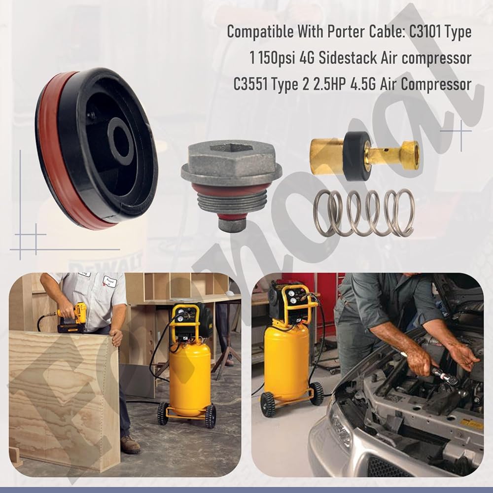 طقم إصلاح منظم ضاغط الهواء المتوافق مع كابل Porter: C3101 النوع 1 150 رطل لكل بوصة مربعة 4G ضاغط هواء جانبي، C3551 النوع 2 2.5HP 4.5G ضاغط هواء، C2150 النوع 1 150 رطل لكل بوصة مربعة 4 جالون ضاغط هواء محمول خالي من الزيت، C3101 150 رطل لكل بوصة مربعة 4.3 جالون زيت- ضاغط هواء جانبي مجاني، ضاغط هواء C3150 من النوع 0 3.5HP 4.5G، ضاغط هواء C3150 من النوع 1 3.5HP 4.5G، ضاغط هواء C2150 من النوع 0 150 رطل لكل بوصة مربعة 4 جالون ضاغط هواء محمول خالي من الزيت، أجزاء ضاغط الهواء C3151 من النوع 2 3.5HP 4.5G.
