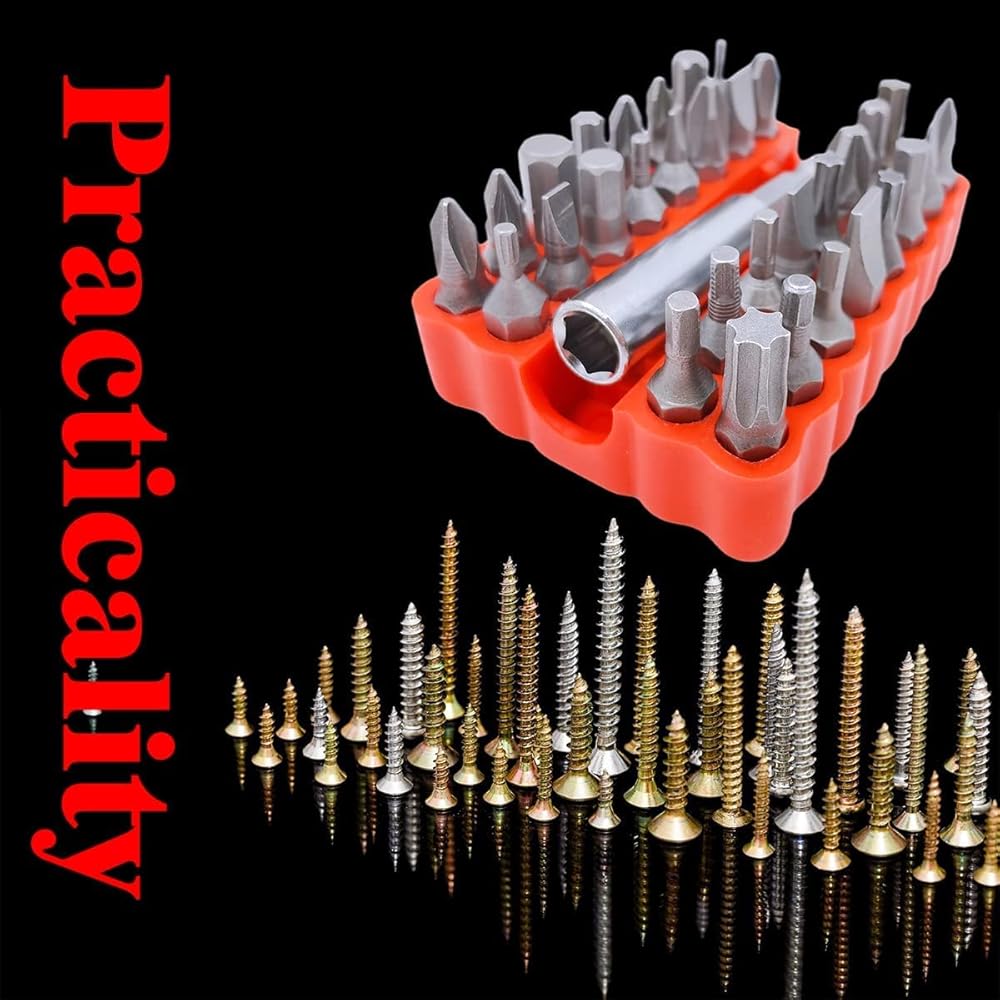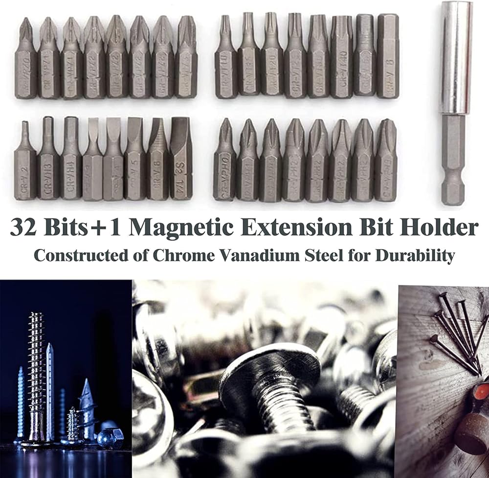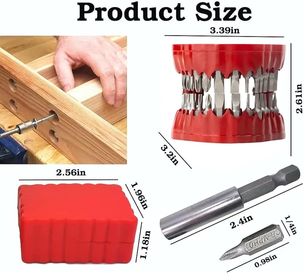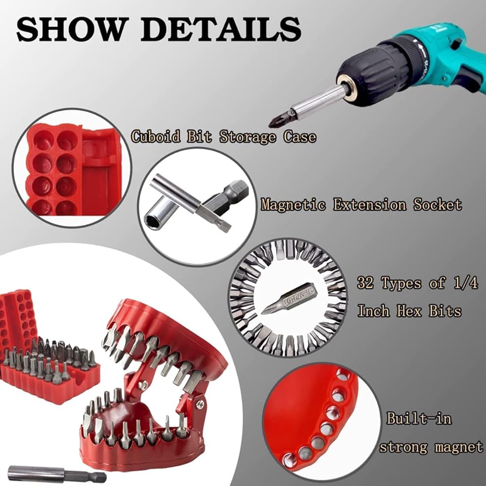 حامل لقم مثقاب كهربائي مع قاعدة مغناطيسية، حامل منظم لقم مفك الاسنان مع 32 قطعة من اللقم ومقبس تمديد مغناطيسي، يناسب لقم سداسية 1/4 انش، سهل التخزين والحمل