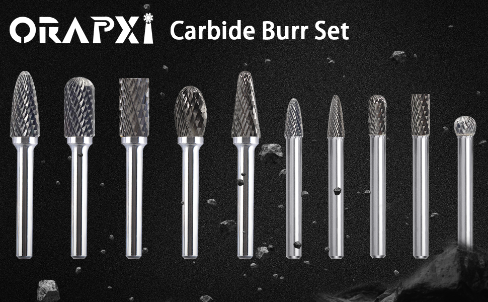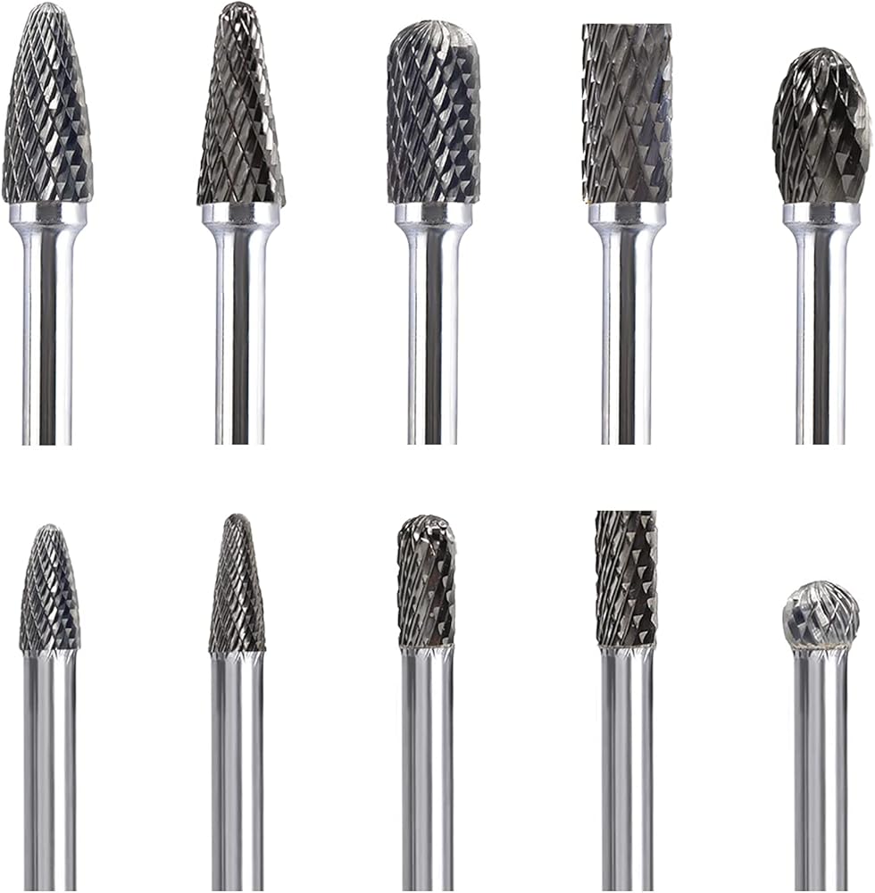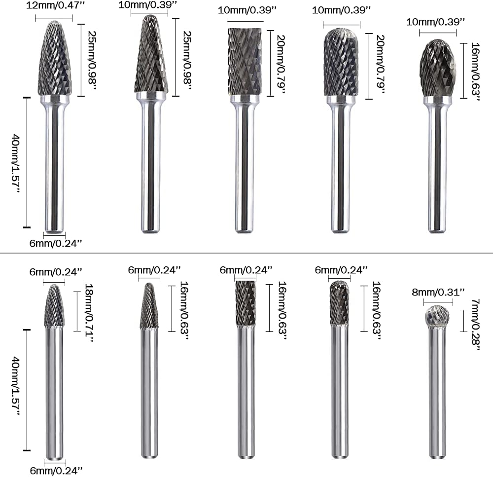 10 قطع من نتوءات الكربيد الدوارة: بما في ذلك 10 أشكال مختلفة، يمكنها معالجة أسطح مختلفة من الأشياء.