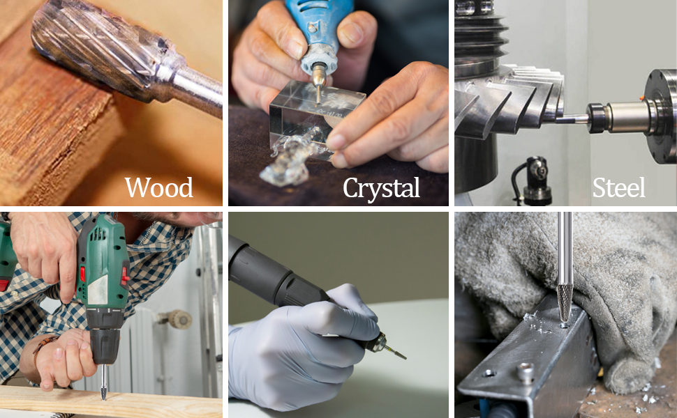 قدرة واسعة على التكيف: يبلغ قطر الساق 1/4 بوصة، وهو ما يناسب معظم الأدوات الدوارة والمطاحن الأخرى. تستخدم على نطاق واسع لنقش الحفر والنجارة.