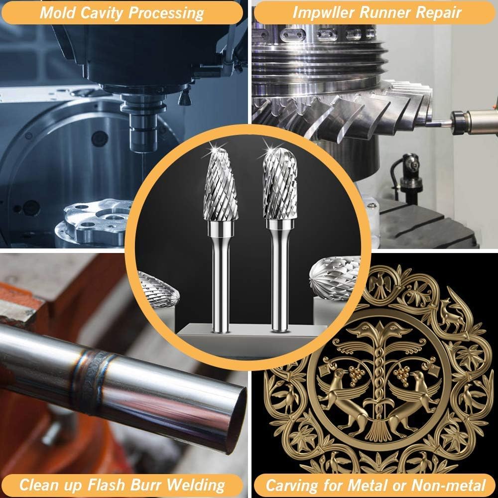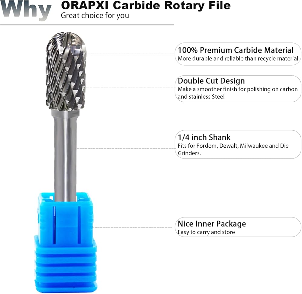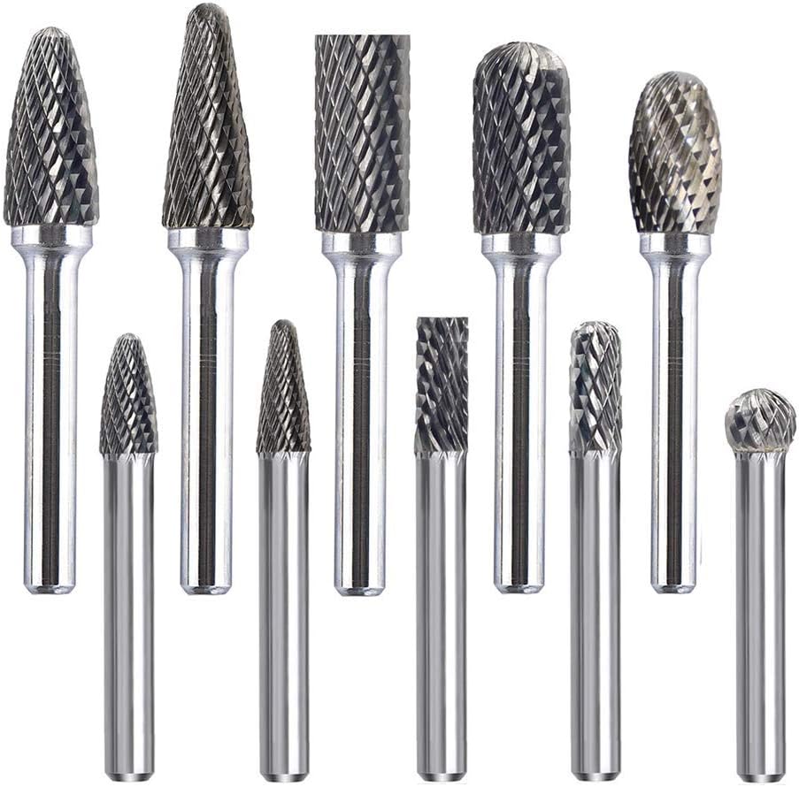 مجموعة شفرات دوارة كربيد مزدوجة القطع - ساق 1/4 بوصة، 10 قطع من قطع الأدوات الدوارة من فولاذ التنجستين، قطع مطحنة القالب لتلميع المعادن ونحت الخشب والحفر بواسطة ORAPXI