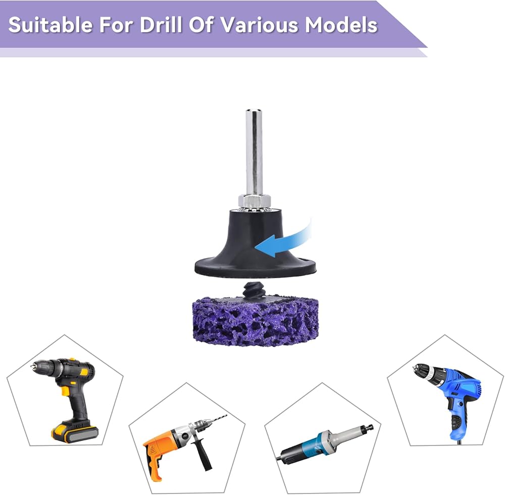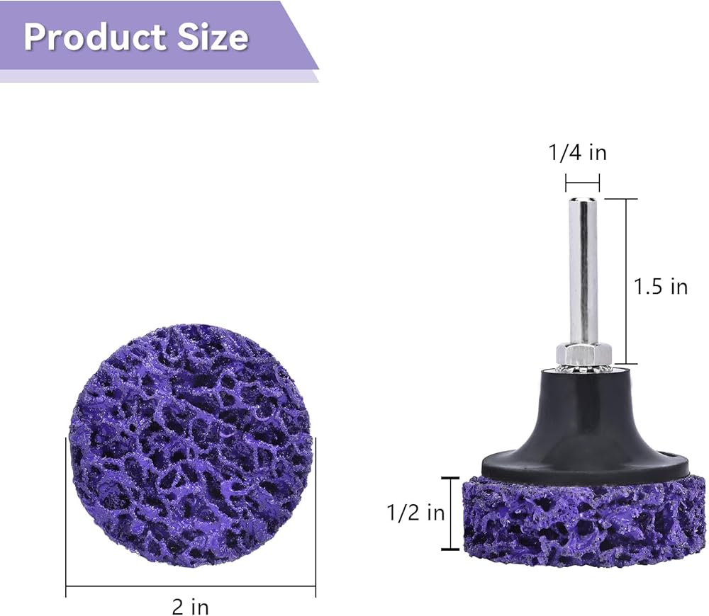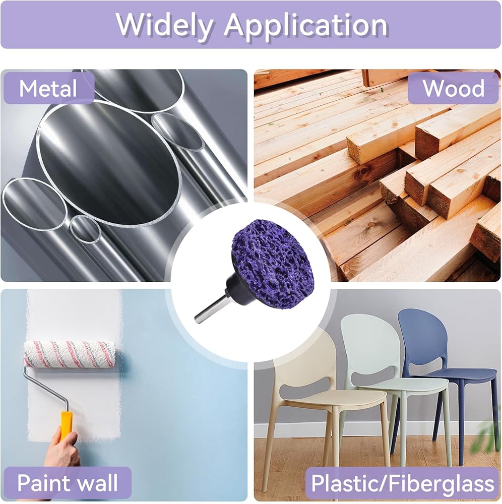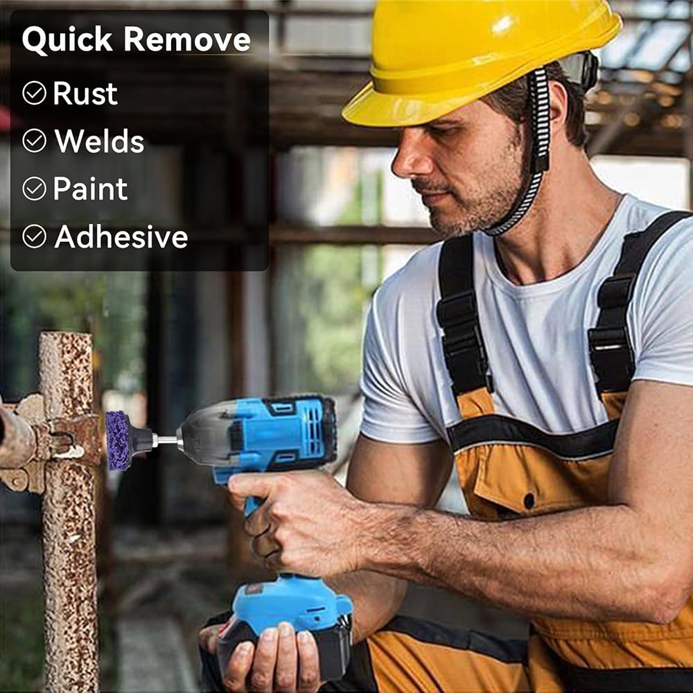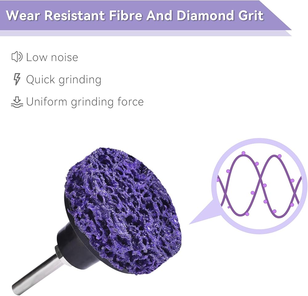 【مواد ممتازة】أقراص الشريط الخاصة بنا مصنوعة من شبكة ألياف مقاومة للتآكل عالية القوة كمادة أساسية، تجمع بين المطاط الصناعي الراتنجي وحبيبات الماس باستخدام عملية خاصة. تعمل عجلات التجريد بسرعة، وهي بديل أكثر أمانًا وفعالية للفرش السلكية وكاشطات اليد.