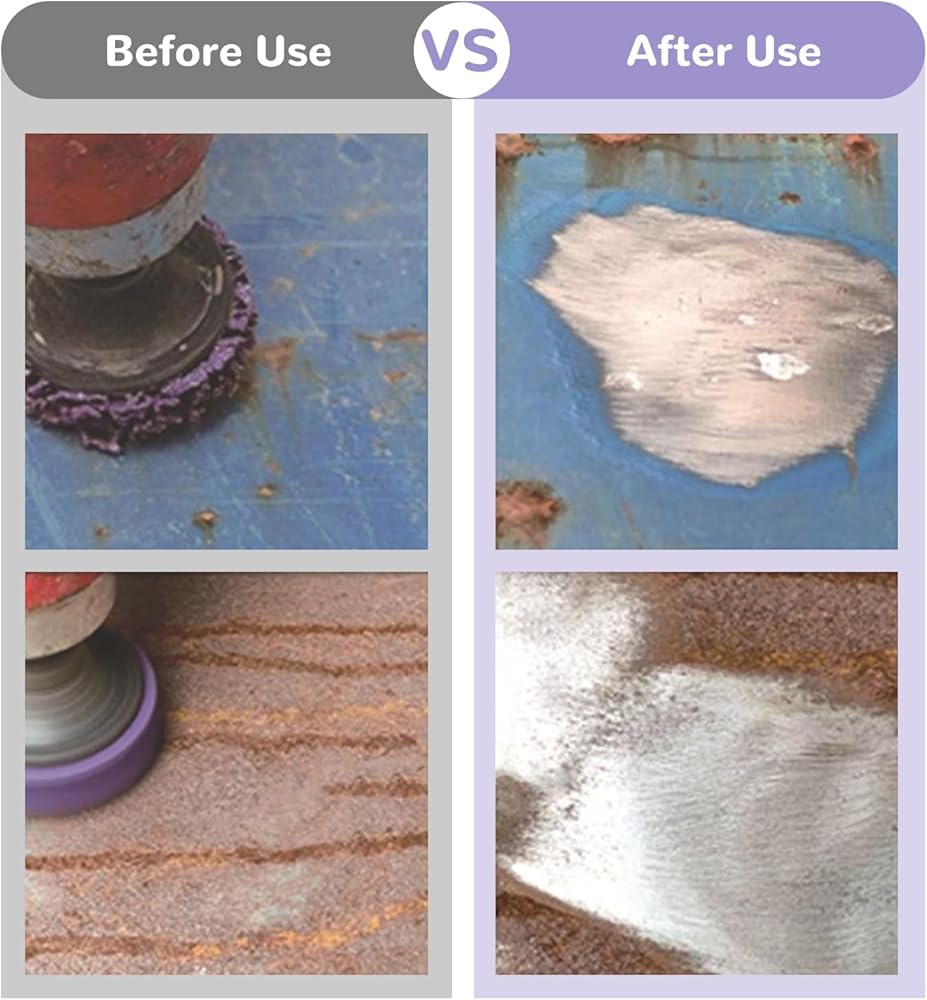 【الاستخدام: يزيل قرص التجريد بشكل فعال الصدأ السطحي والطلاء والأكسيد والمواد اللاصقة والطلاء العام وسطح التلميع دون إتلاف الجسم. يمكن استخدامها على الأسطح المصنوعة من الفولاذ المقاوم للصدأ والفولاذ الطري والألومنيوم والبلاستيك والخرسانة والخشب والحجر.