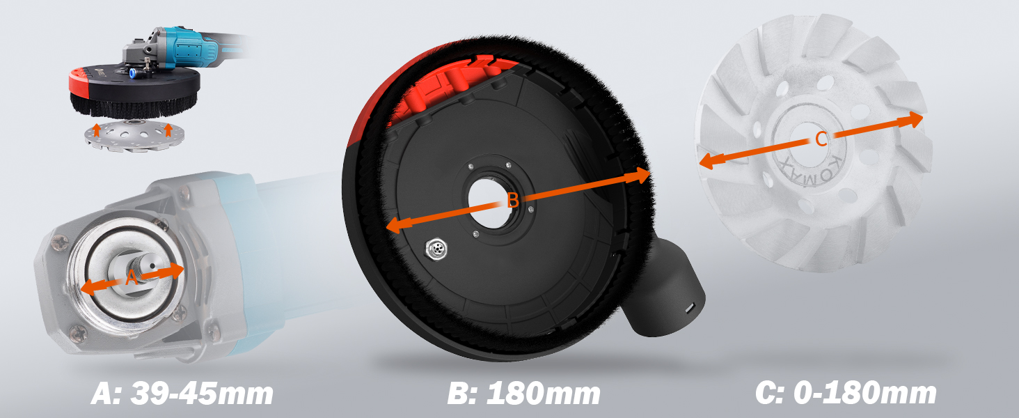 【Adaptable to Various Models】The angle grinder dust shroud is a perfect match for most 39-45mm angle grinders, effortlessly install into the front cover. Additionally, it's designed for easy installation on most 7 inch angle grinders. It's your go-to choice for compatibility, fitting well with top brands like Hitachi, Makita, FLEX, METABO, HILTI, BOSCH, Kress, FESTOOL, STANLEY, Milwaukee, and other major players. Experience the convenience of a seamless fit and hassle-free setup