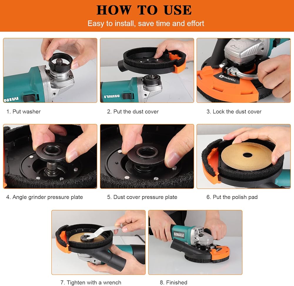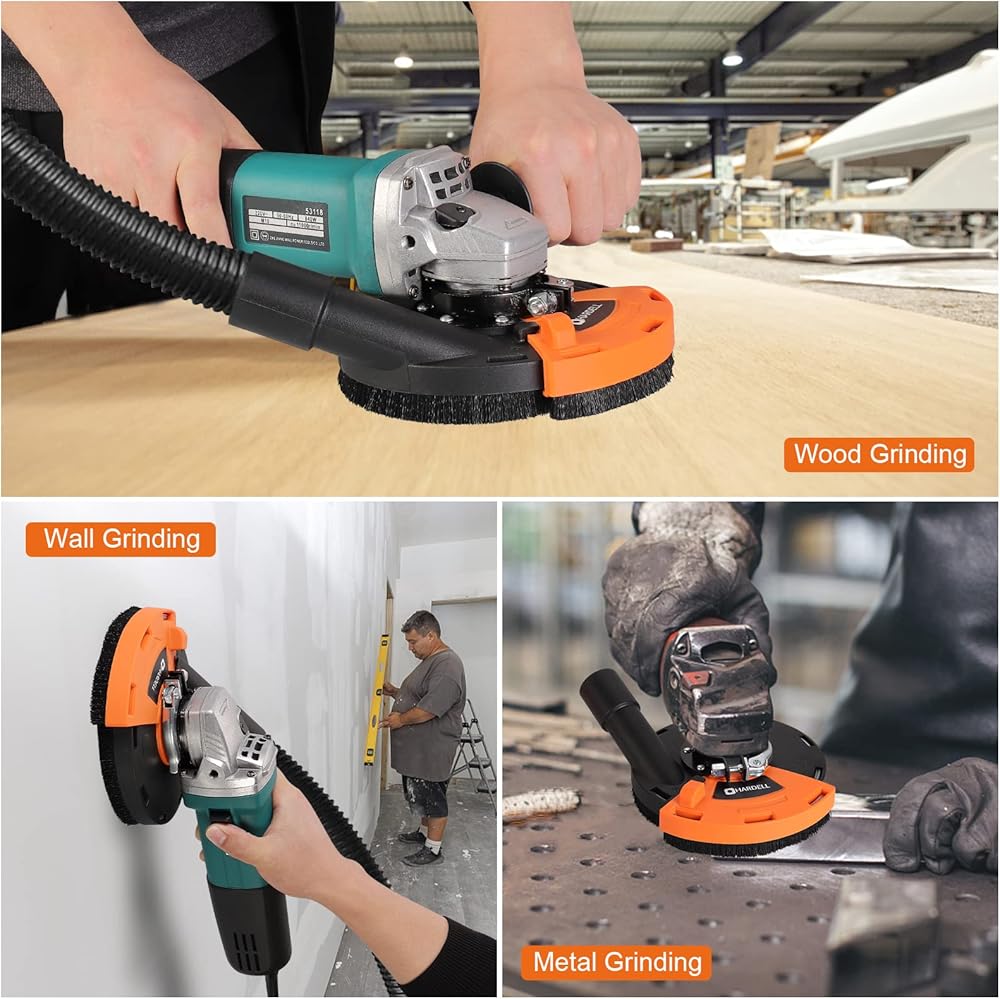 【Seamless Vacuum Integration】No Dust Leakage Worries, No Extra Accessories Needed!Setting us apart from the rest, our 7 inch grinder dust shroud features a unique snap-on connector for your vacuum. Say goodbye to concerns about dust leakage—our design ensures a tight link to your vacuum kit without requiring any additional purchases. Experience hassle-free dust extraction that's both efficient and worry-free