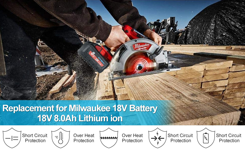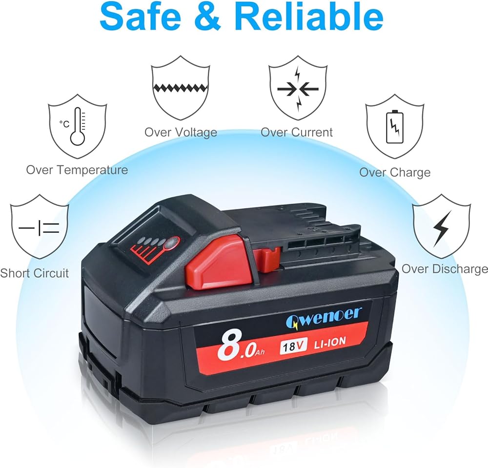 【آمنة وموثوقة】تتمتع بطارية ميلووكي البديلة 18 فولت بحماية متعددة من الشحن الزائد، والتفريغ الزائد، والجهد الزائد، والتيار الزائد، والسخونة الزائدة، والحمل الزائد، والدائرة القصيرة. رقاقة تحكم ذكية مدمجة تضمن السلامة.