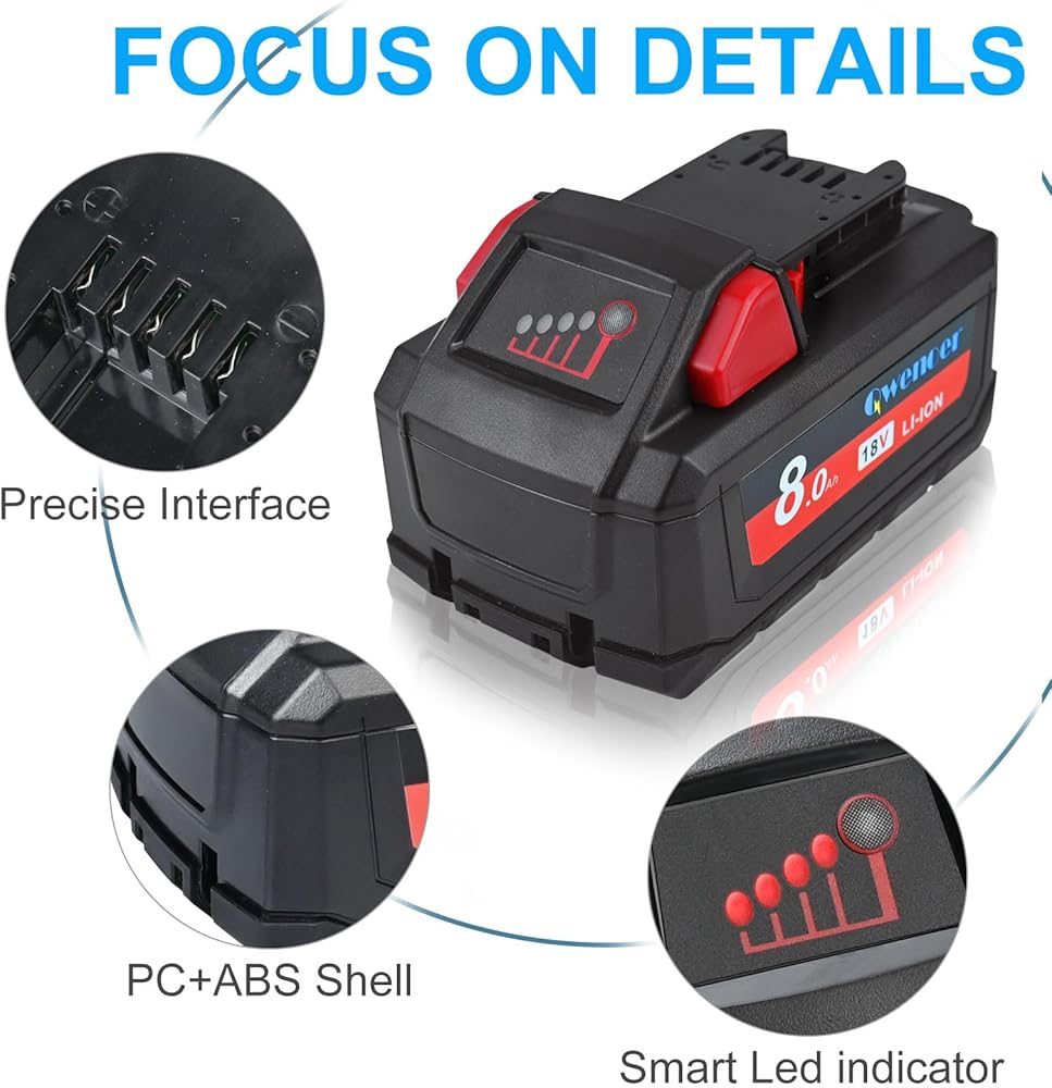 توافق واسع: متوافق تمامًا مع أدوات خط ميلووكي 18 فولت. بديل لميلووكي 18 فولت 48-11-1811، 48-11-1815، 48-11-1820، 48-11-1822، 48-11-1828، 48-11-1840، 48-11-1841، 48-11- 1850، 48-11-1852، 48-59-181، 48-59-1850 أدوات لاسلكية.