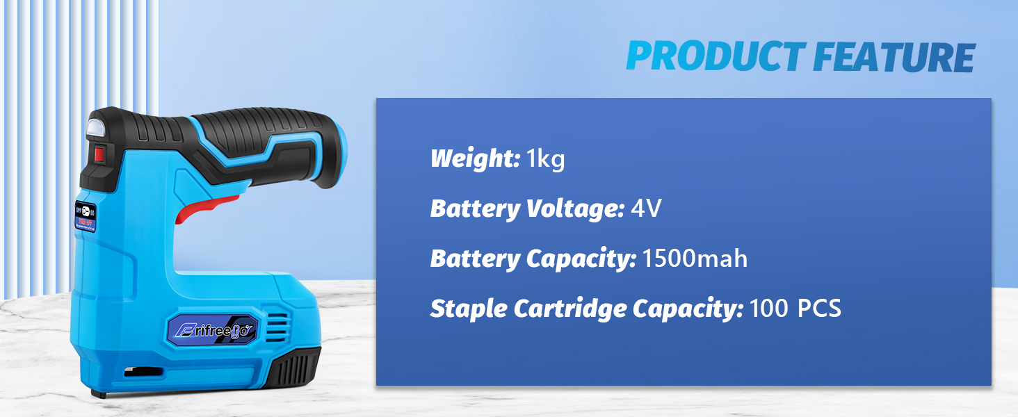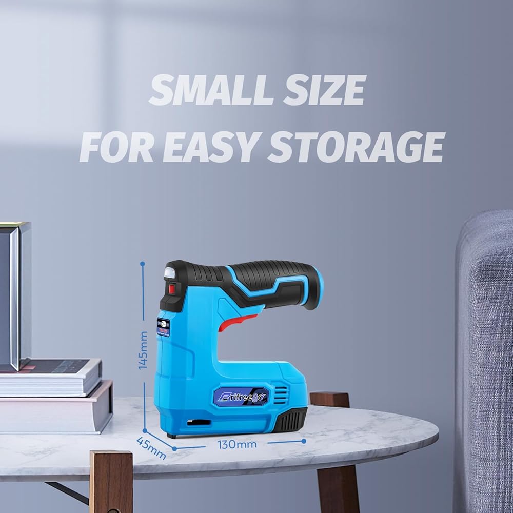 CONPACT & LIGHT: Less than a kilogram of weight allows you to easily lift and hold the machine, and not get tired of nailing for a long time. Compact shape allows easily storage without taking up other space.