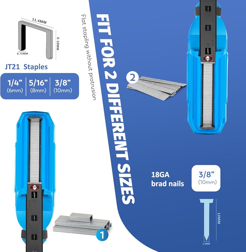 2 IN 1 WIDE USE: This electric staple gun is suitable for both U-nail and T-nail binding needs. What's more, for your convenience, we will provide two boxes of staples for free with the package.