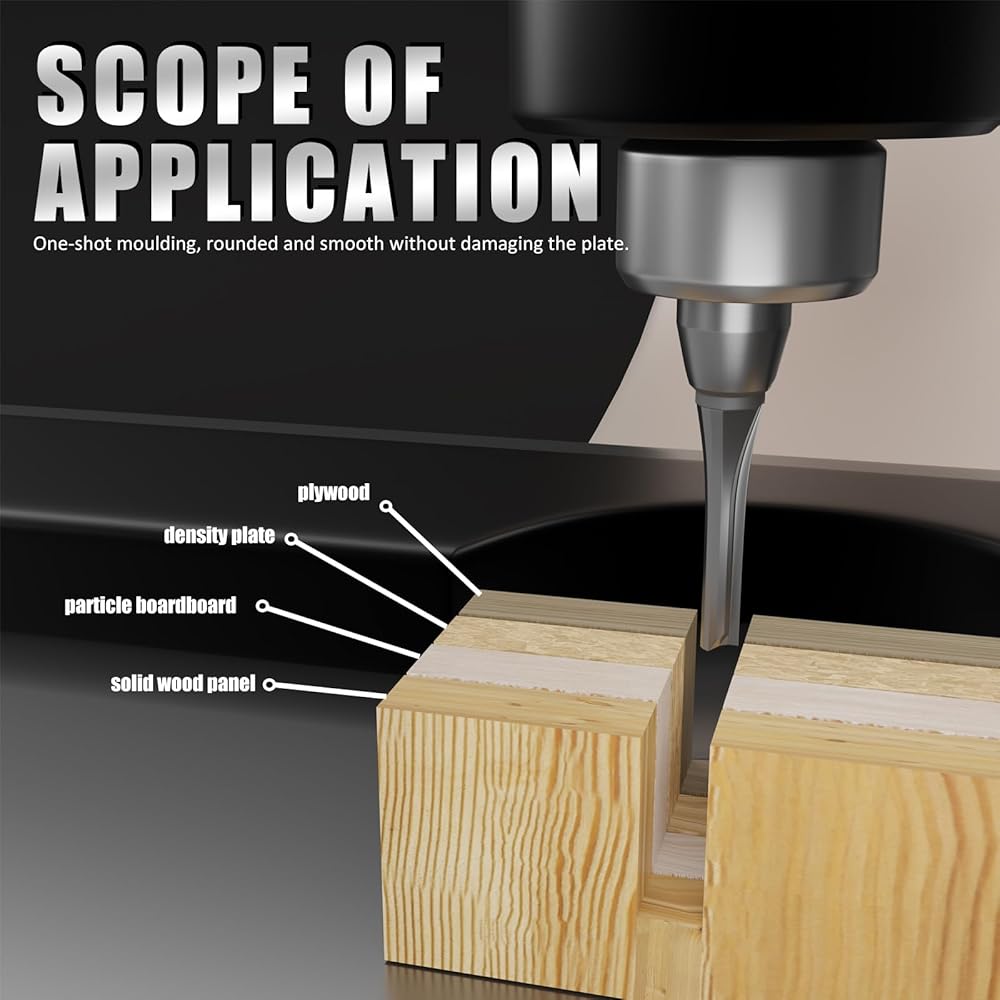 نطاق الاستخدام: مناسب لألواح MDF، والصفائح، وألواح الجسيمات، والألواح الصغيرة من الخشب الرقائقي، والأكريليك، وغيرها من الأخشاب. تشتمل الطرز المتوافقة على أجهزة التوجيه CNC وأجهزة التوجيه الأوتوماتيكية الأخرى وأجهزة التوجيه المحمولة المحمولة والمثبتة على الطاولة. تحذير: غير مناسب للمواد غير الخشبية مثل الفولاذ والحديد والرمل وما إلى ذلك.