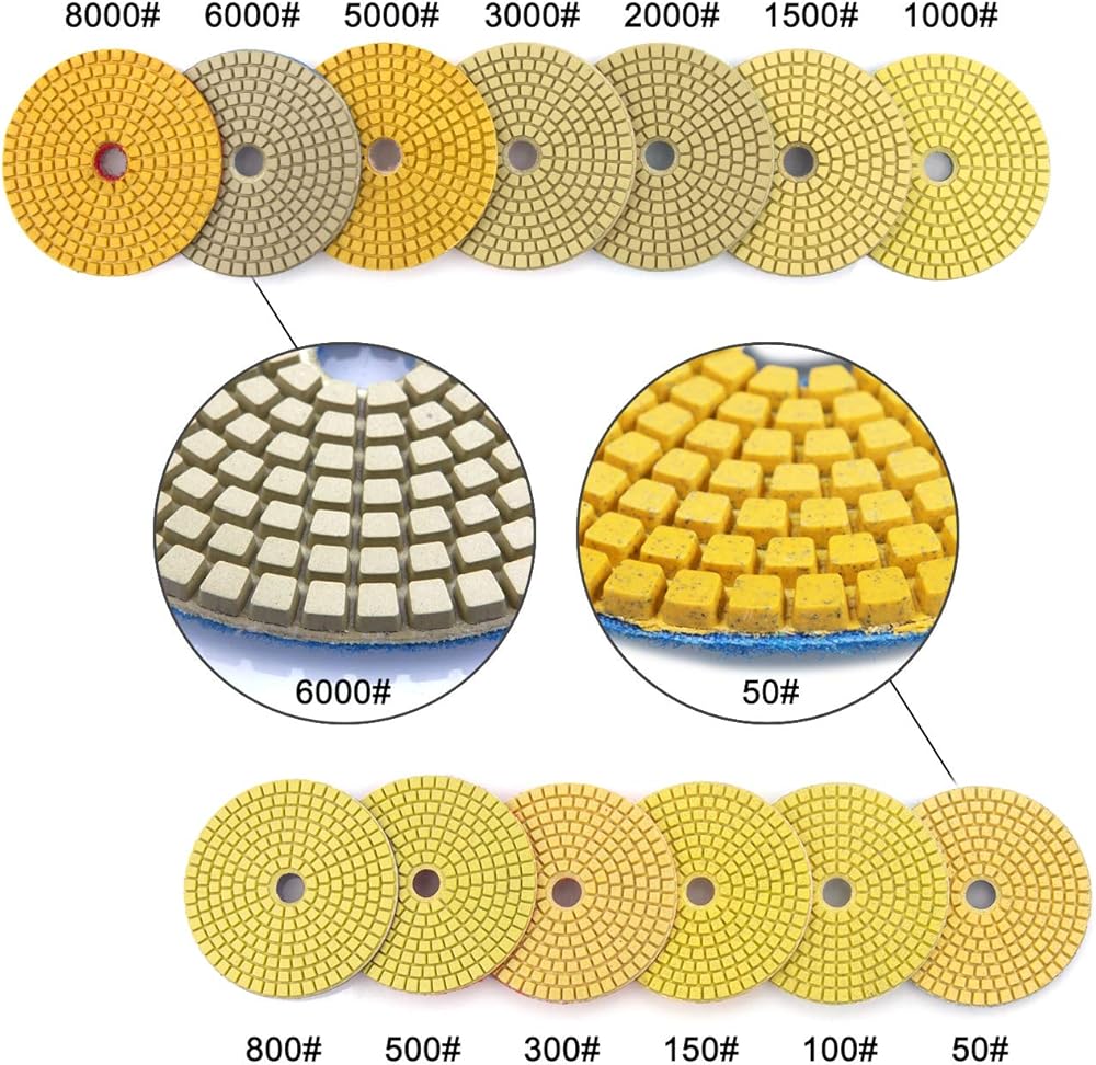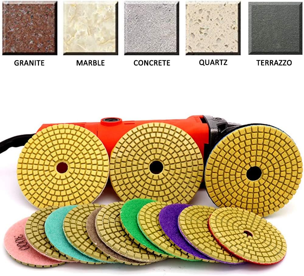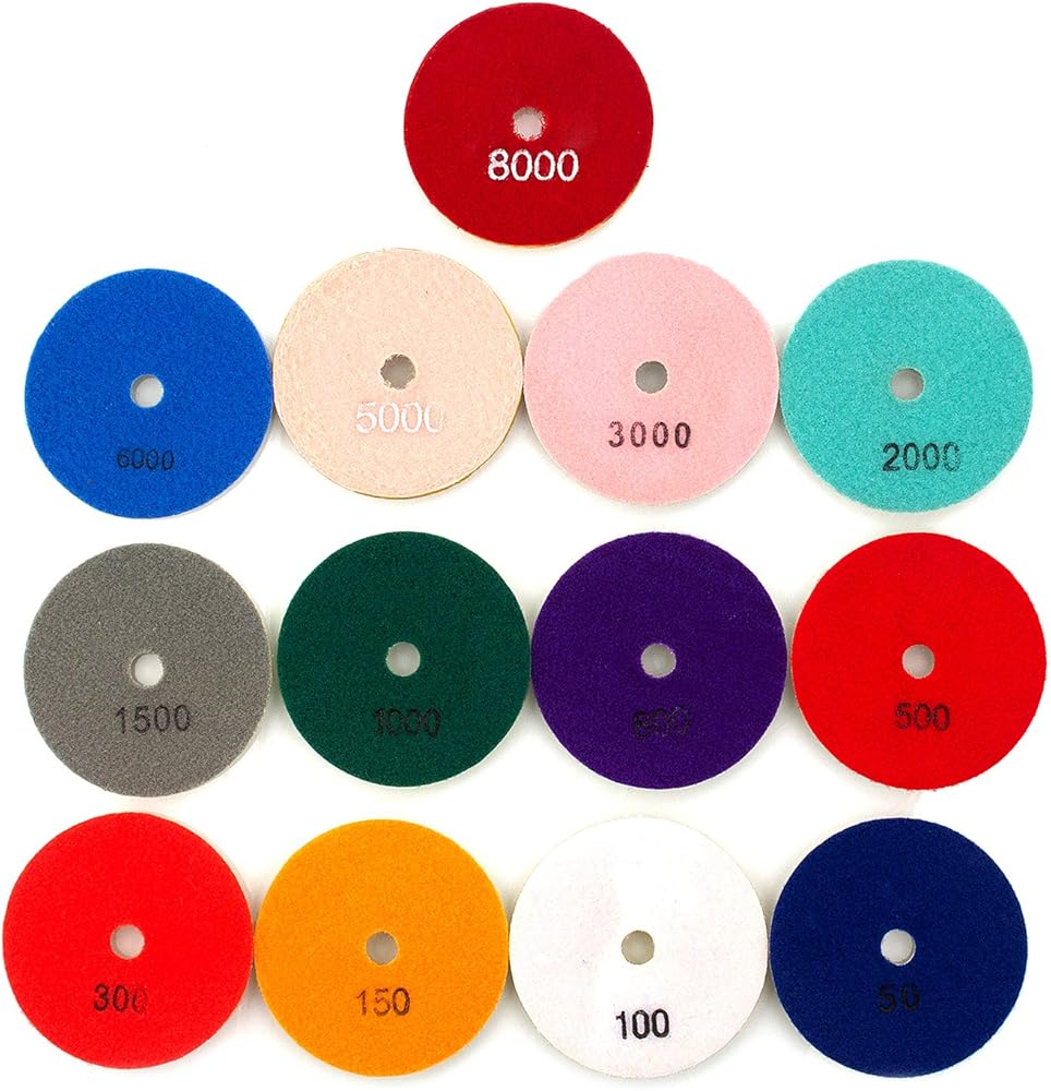مجموعة وسادات تلميع مبللة ماسية من اي دي في سر مكونة من 13 قطعة مقاس 4 انش لطحن الأرضيات الرخامية أو حجر الجرانيت والخرسانة والرخام، 50#-8000# مع وسادات حامل خلفية بخطاف وحلقة للتلميع الرطب