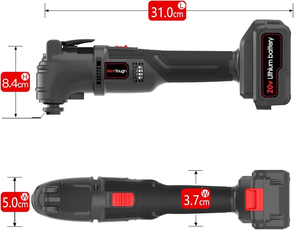 مجموعة أدوات التأرجح اللاسلكية 20 فولت من Werktough 26 قطعة أدوات ماكسي متعددة لقطع الصنفرة والكشط شفرة سريعة التحرير بما في ذلك بطارية ليثيوم أيون مع شاحن سريع لمدة ساعة واحدة