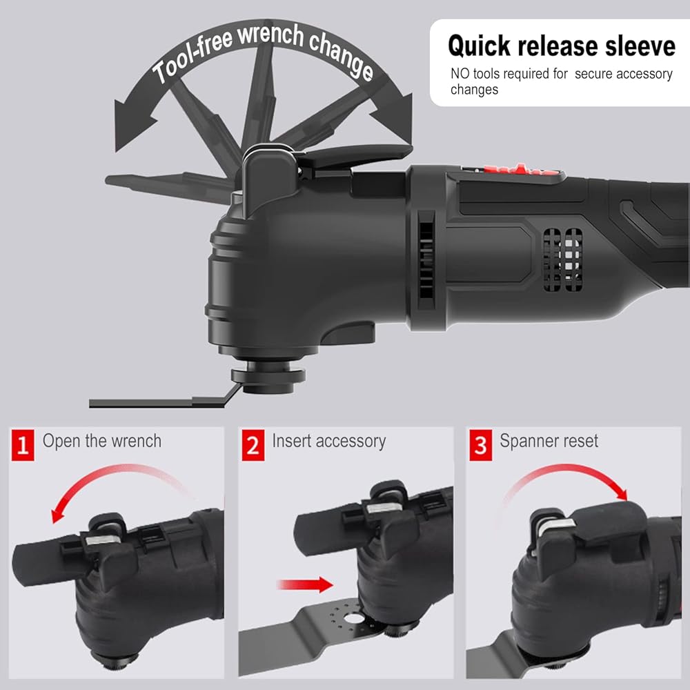 • مجموعة أدوات ماكسي قادرة على القيام بجميع أنواع الوظائف المنزلية، مثل القطع والصنفرة والكشط. بفضل الهيكل النحيف والقبضة الناعمة والتصميم المريح، يمكن تشغيل الماكينة بسهولة. بفضل زاوية التأرجح البالغة 3 درجات، تجعل الماكينة تعمل بقوة ويمكن الحصول عليها بسهولة تم إنجاز المهمة. هذه مجموعة أدوات يمكن أن تساعدك بشكل كبير في التعامل مع التحديات المختلفة لتحسين المنزل، مجموعة واحدة في متناول اليد، مساعدة جيدة للنوم الجيد.