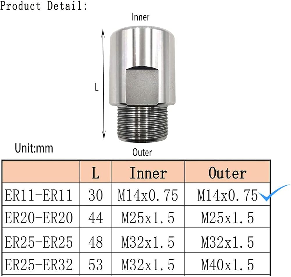 - Package contents ER11-ER11 spindle thread adapter