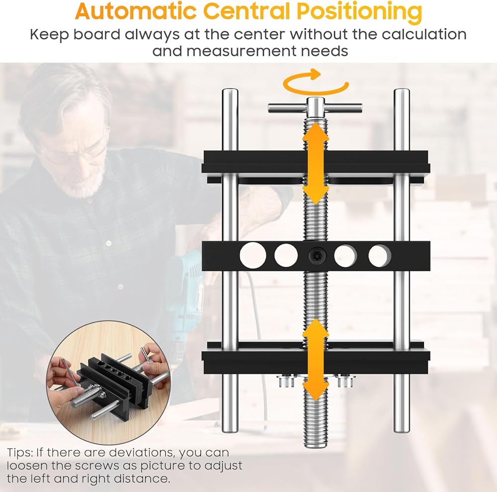 【حفر دقيق】 مصنوعة من سبائك الألومنيوم للطيران، أداة الوتد للأعمال الخشبية قوية ومتينة، ويمكن استخدامها لفترة طويلة دون القلق بشأن البلى والتمزق. عند تدوير المسمار الأوسط، سيتم شد مشابك الألومنيوم على جانبي أداة الوتد ذاتية التمركز في وقت واحد، مما يوفر ضغط تثبيت منتظم ومستقر لتثبيت قطعة العمل، وتحقيق التمركز التلقائي دون الحاجة إلى القياس أو الحساب.